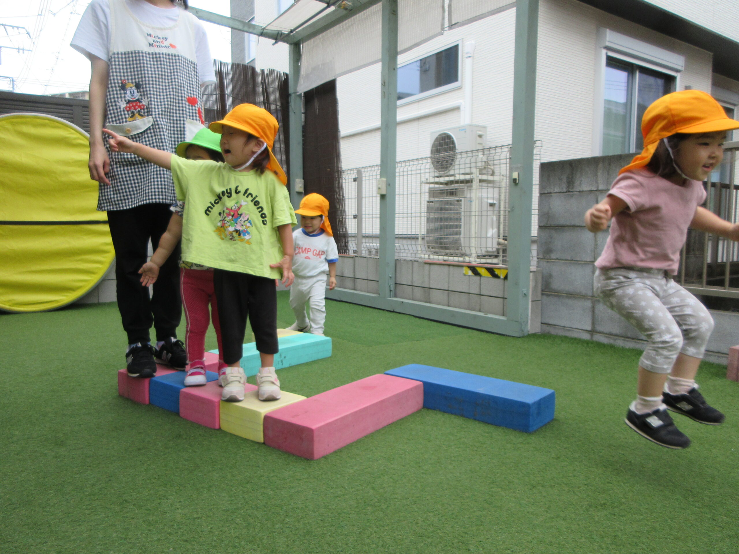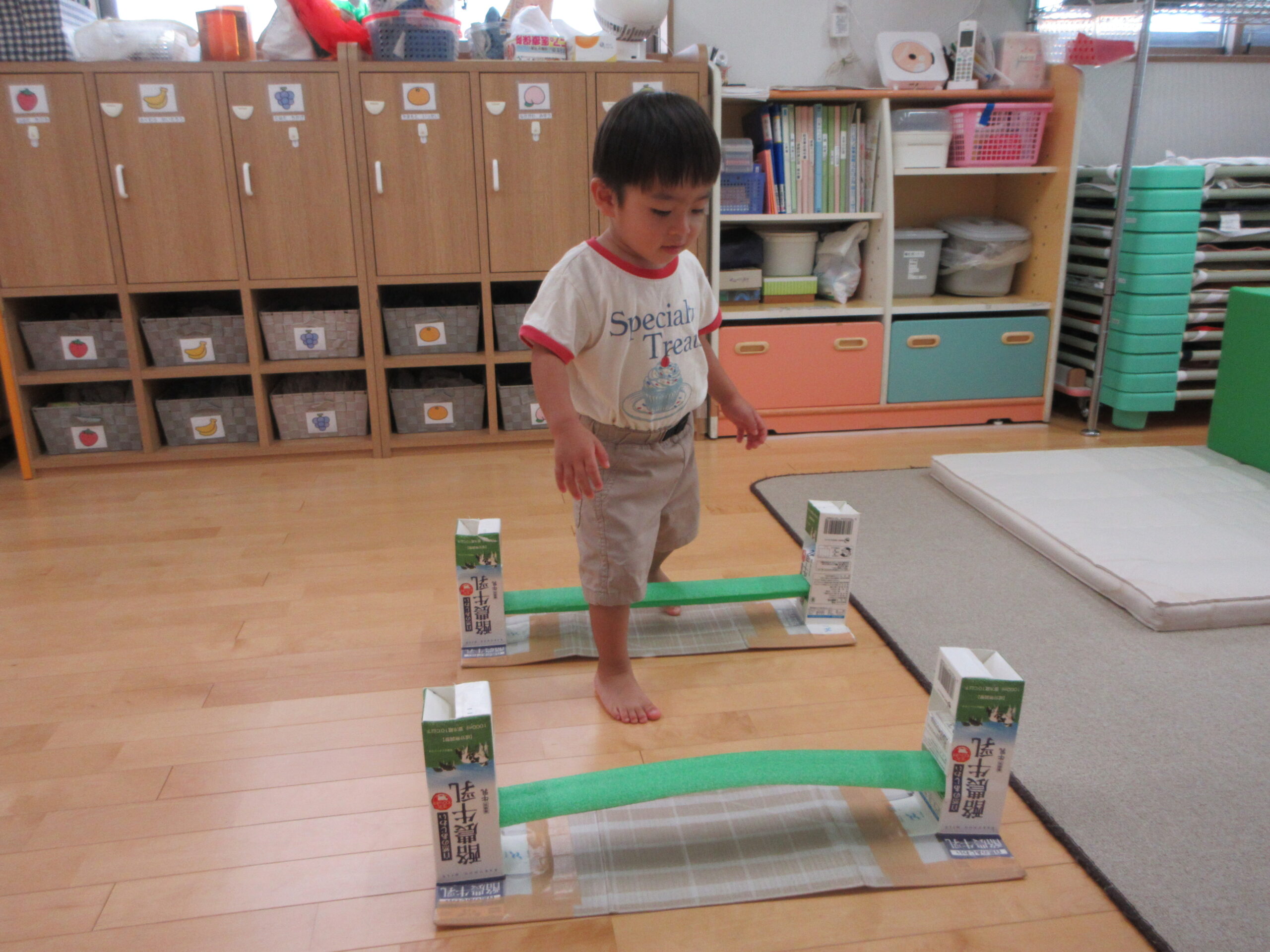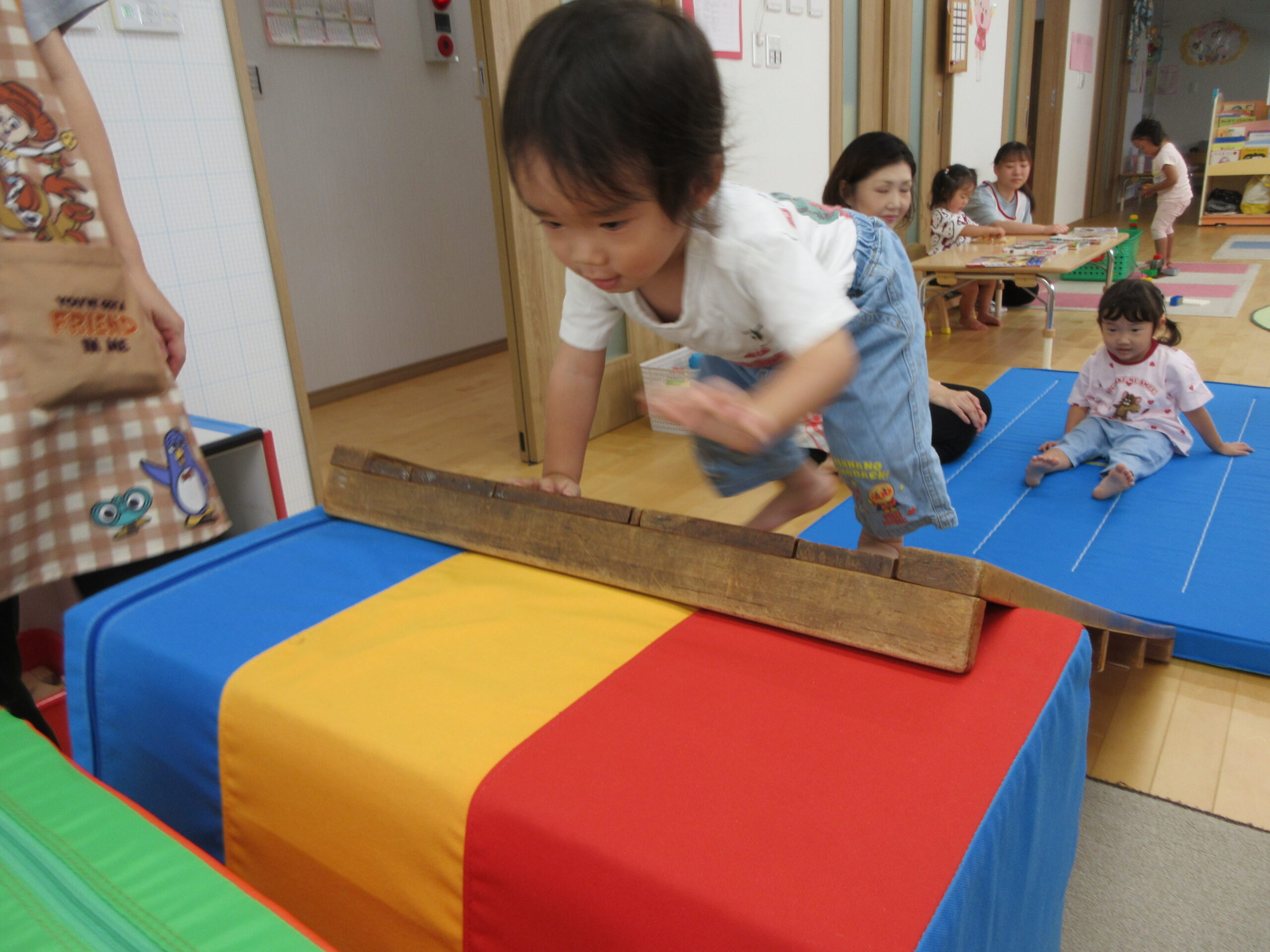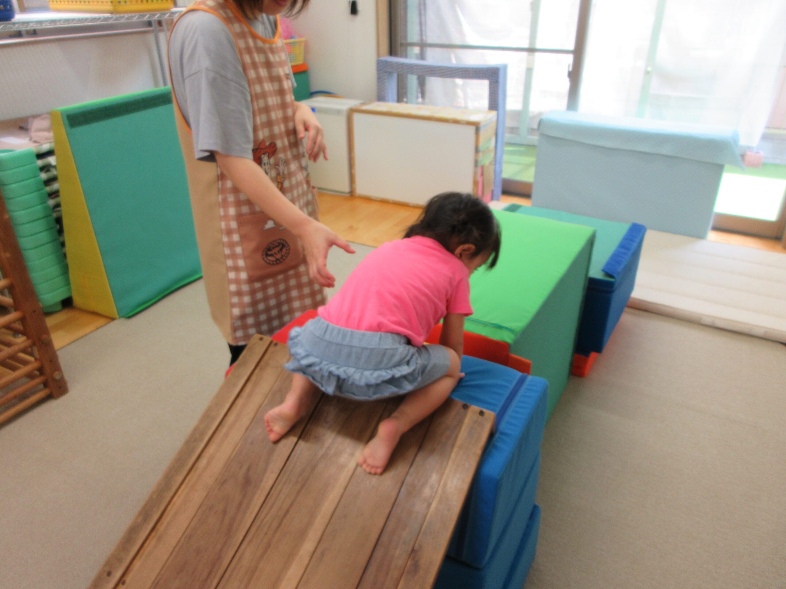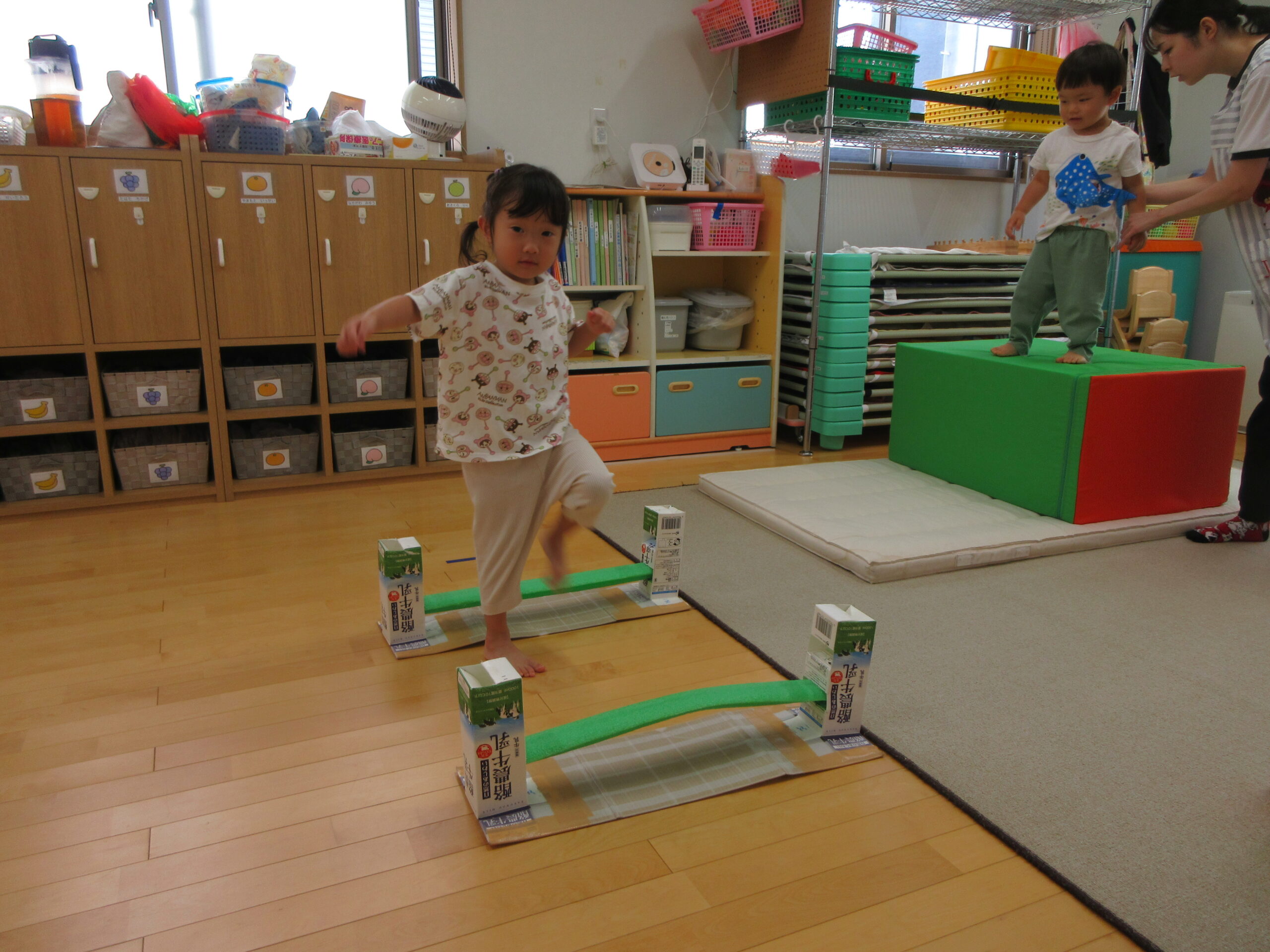 音楽に合わせて身体を動かしたり、はしごを渡ったり