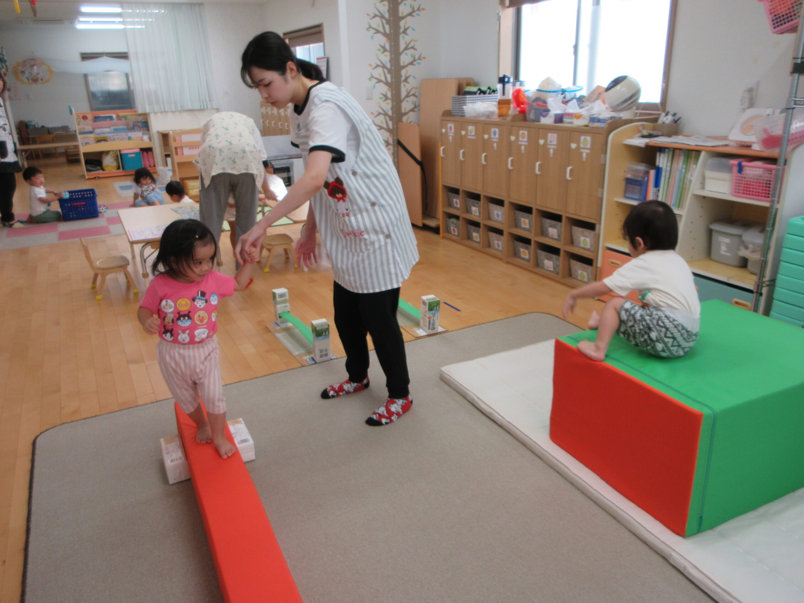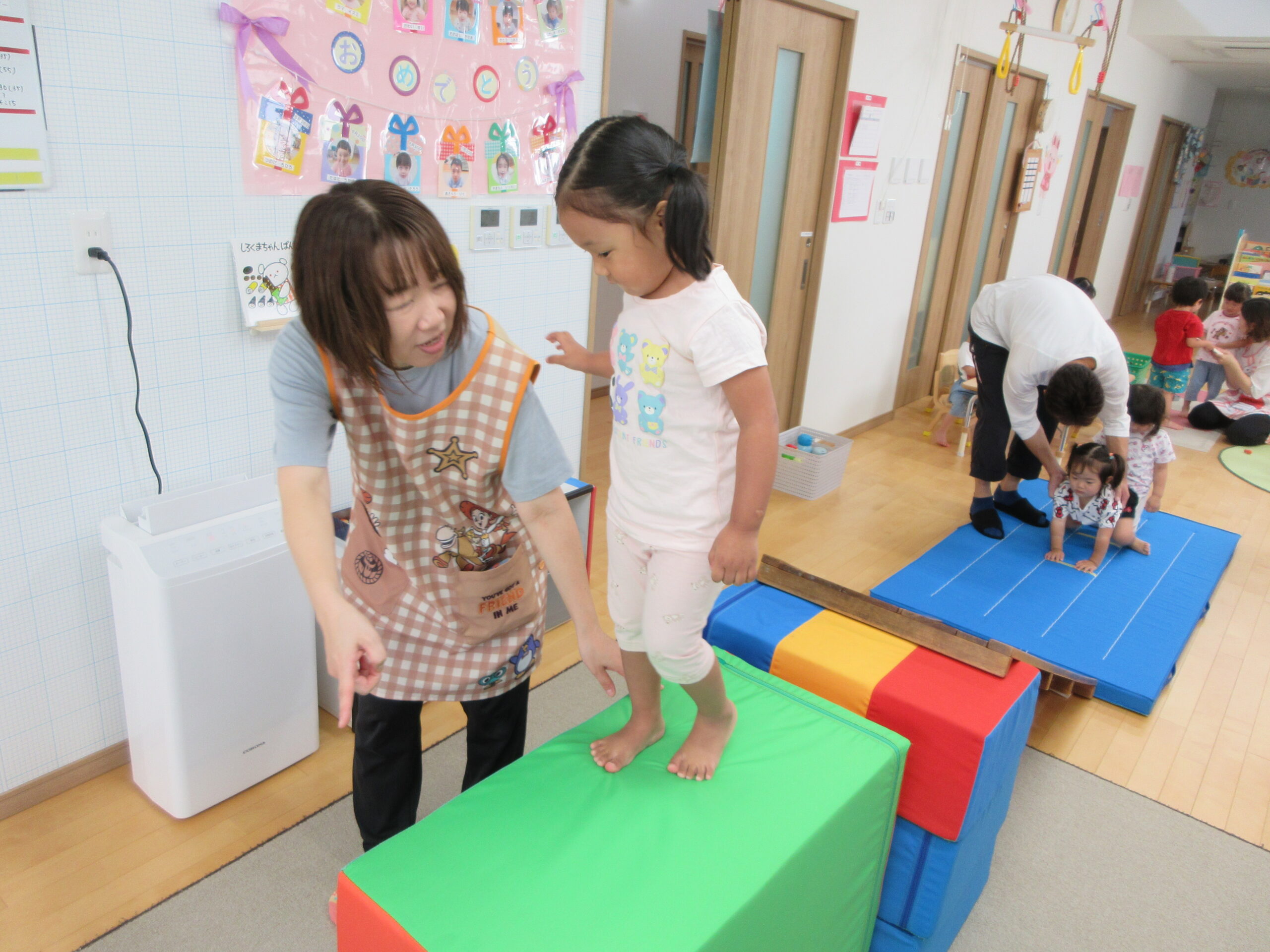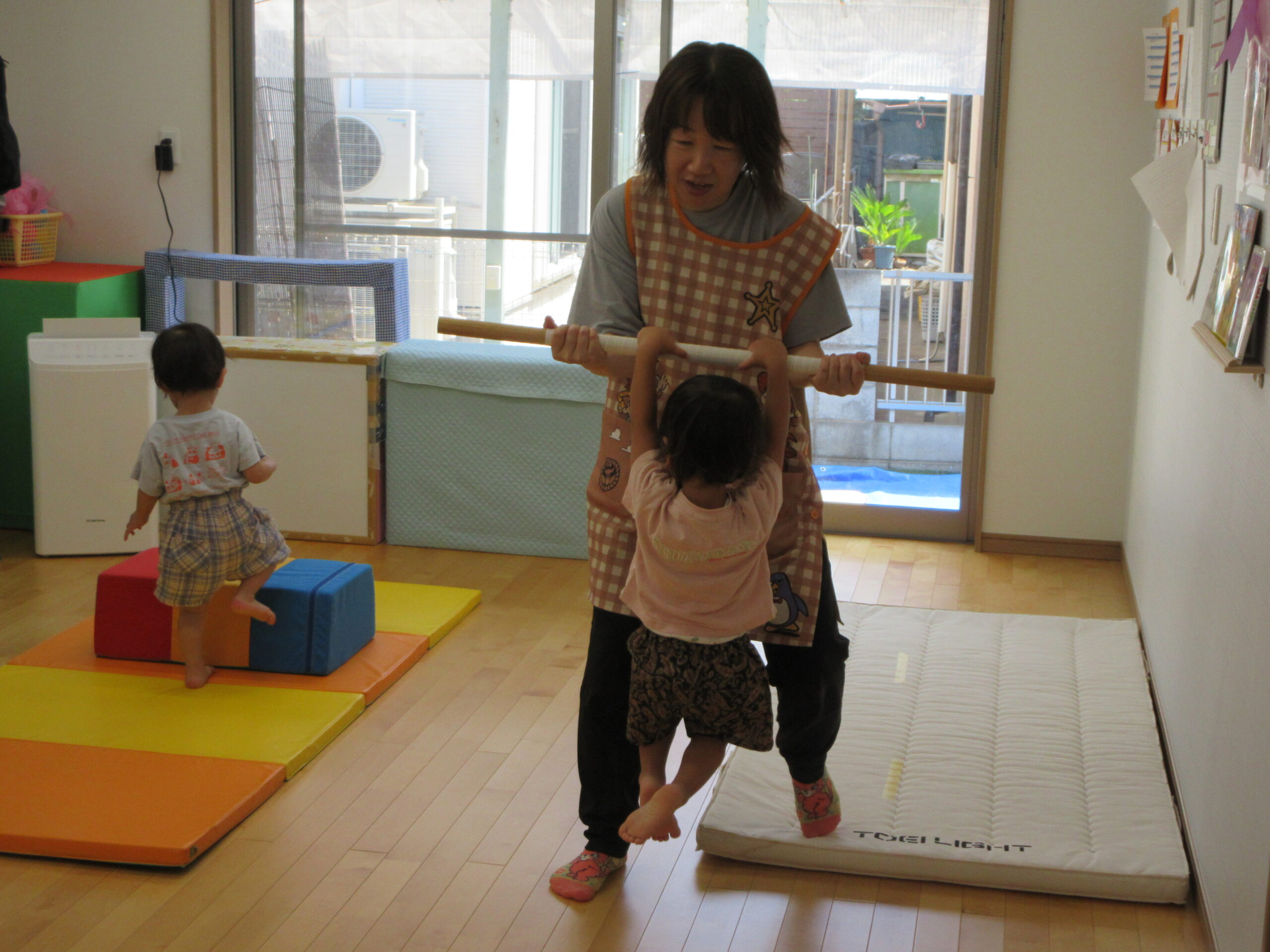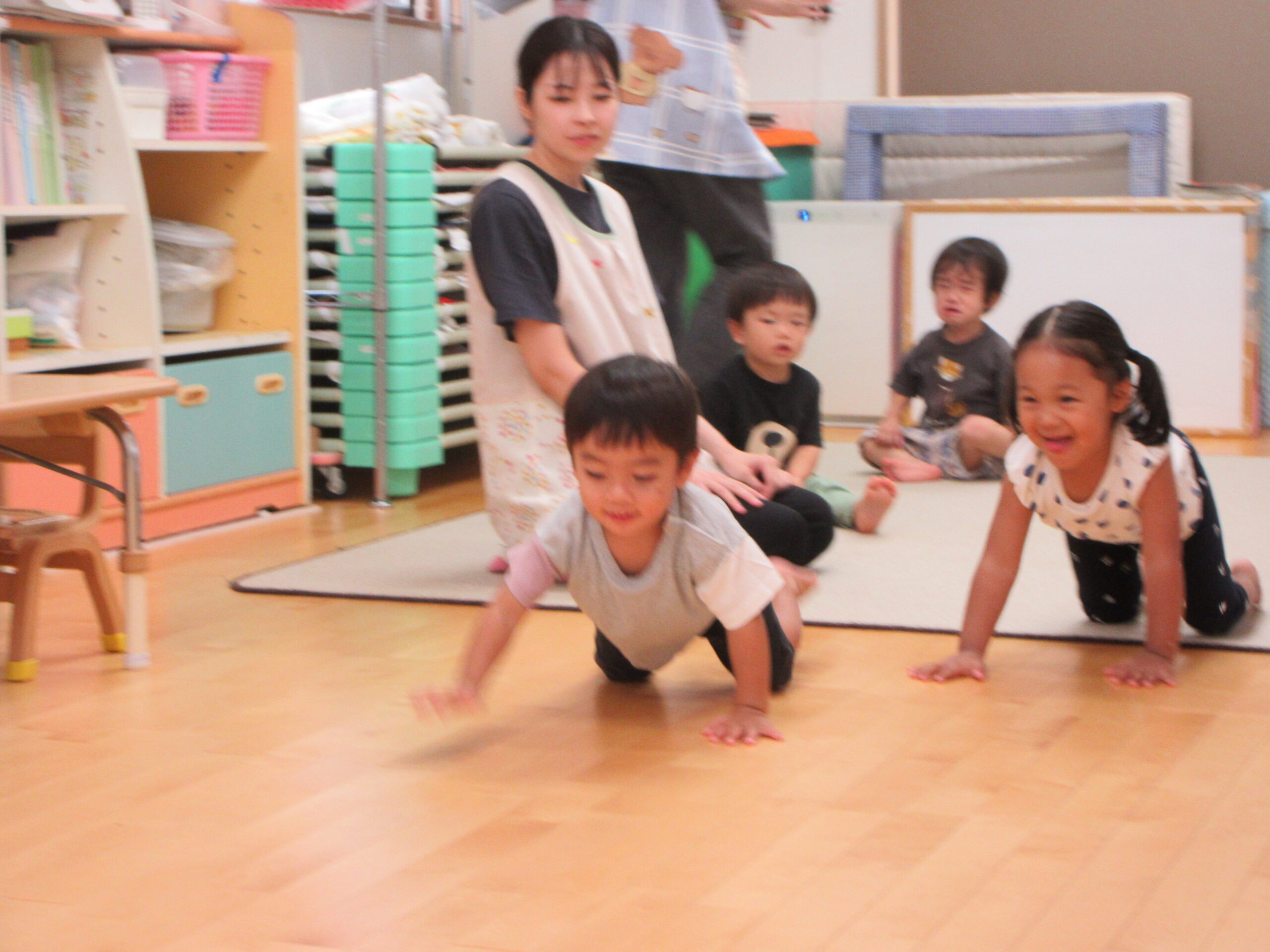 音楽に合わせて身体を動かしたり、はしごを渡ったり