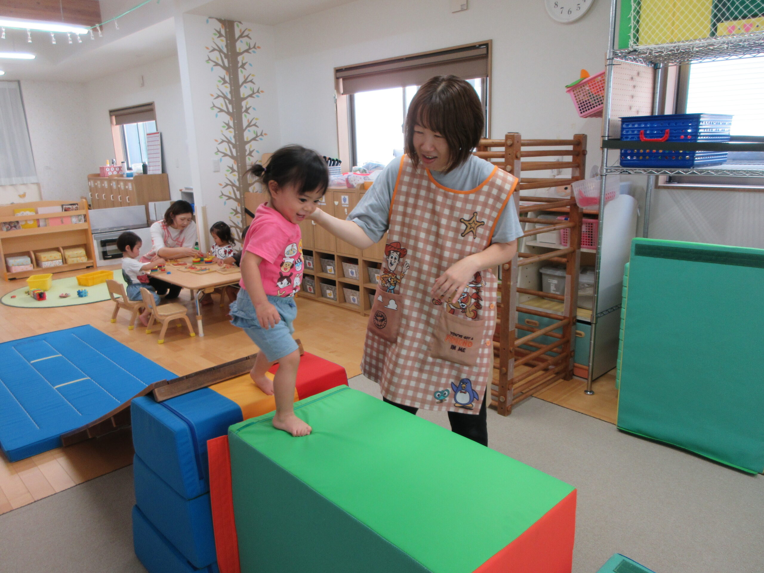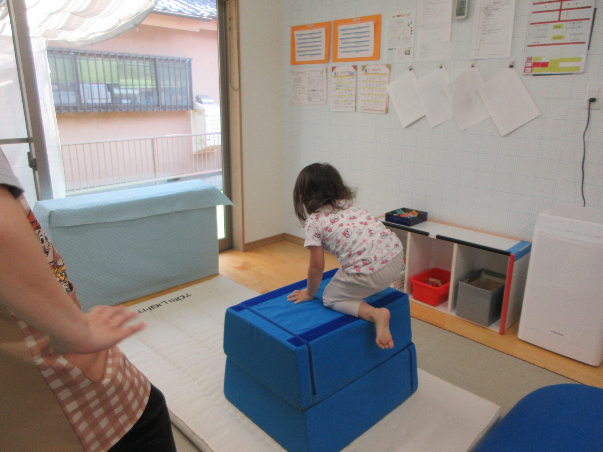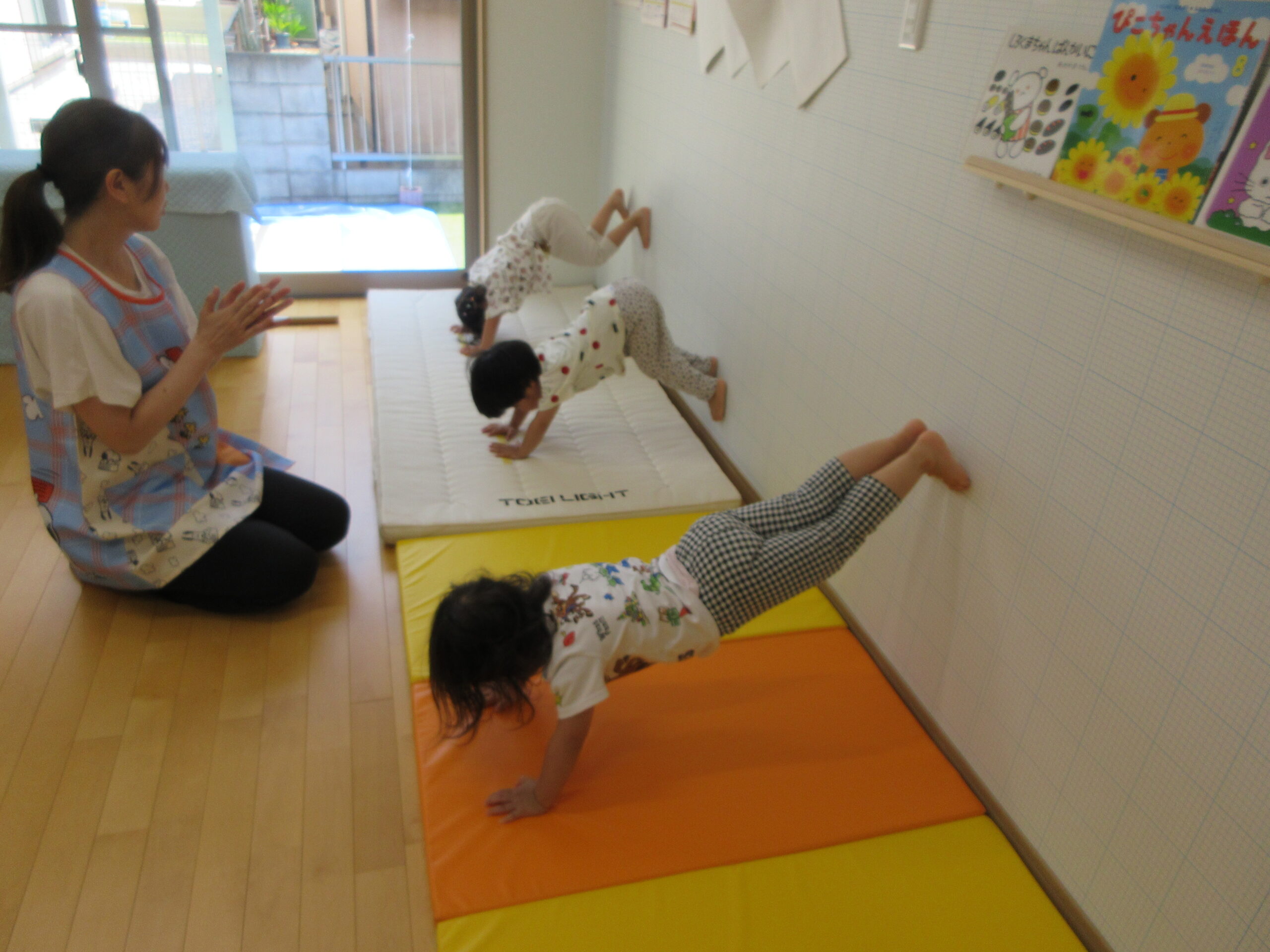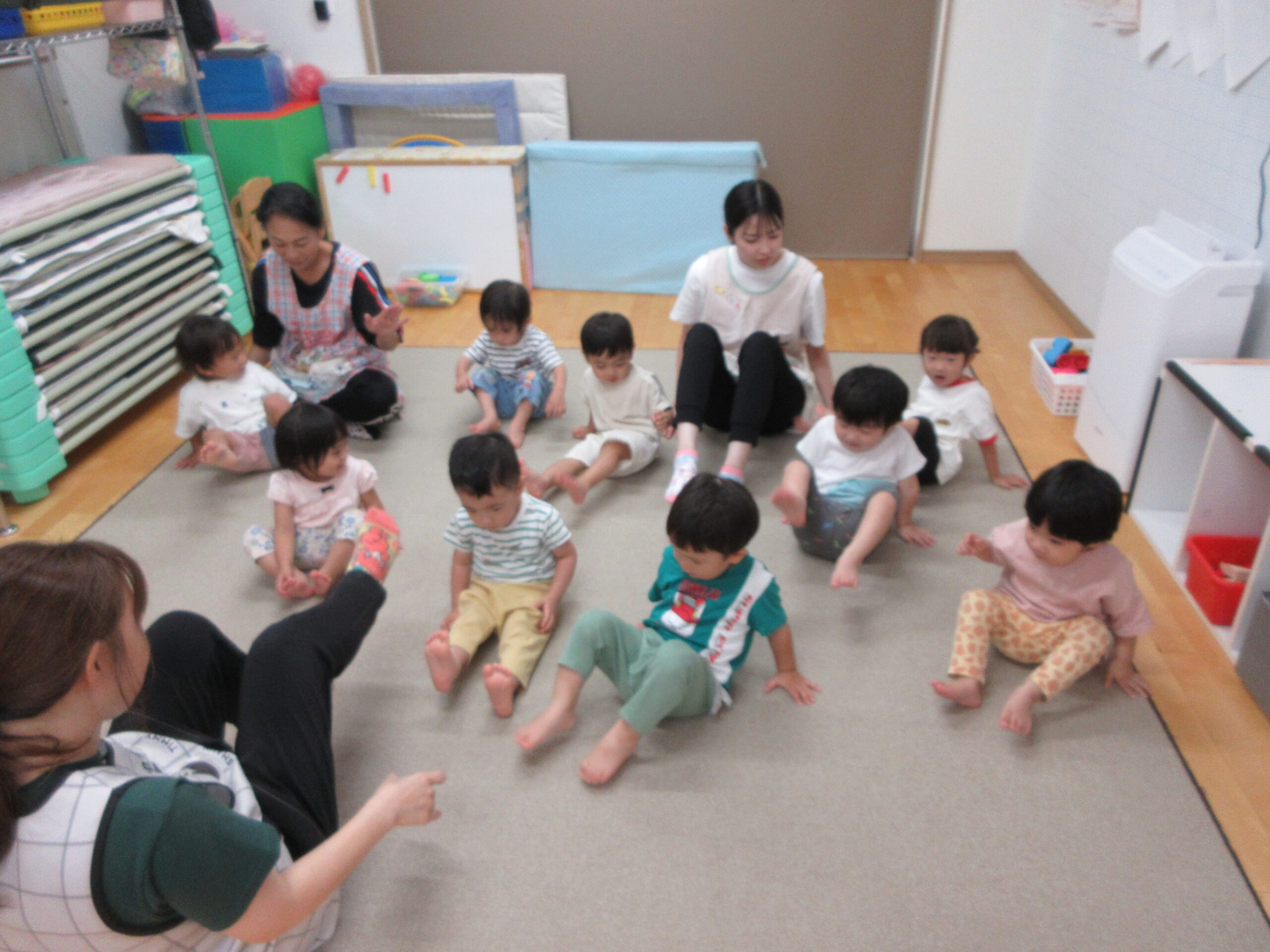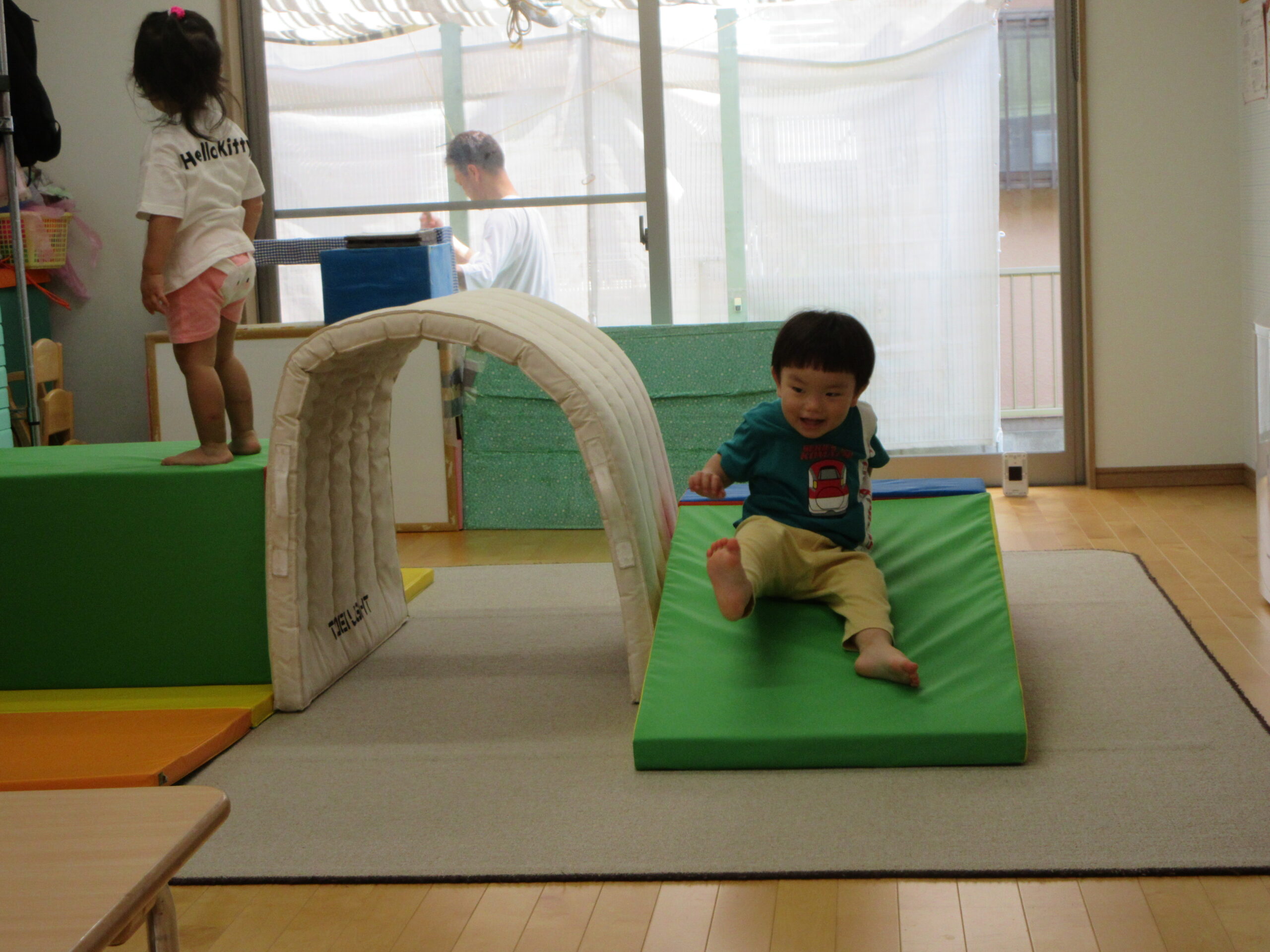 音楽に合わせて身体を動かしたり、はしごを渡ったり