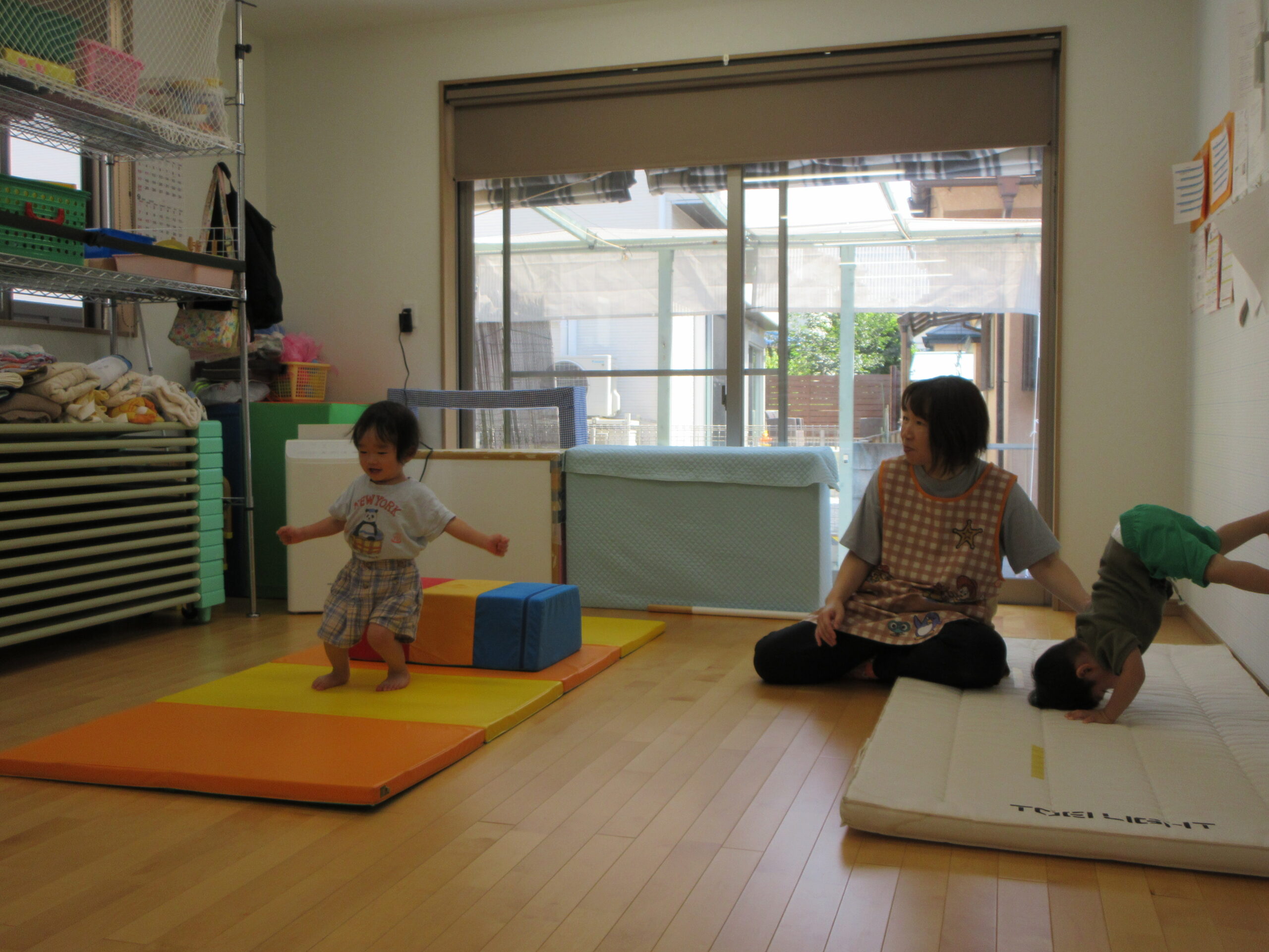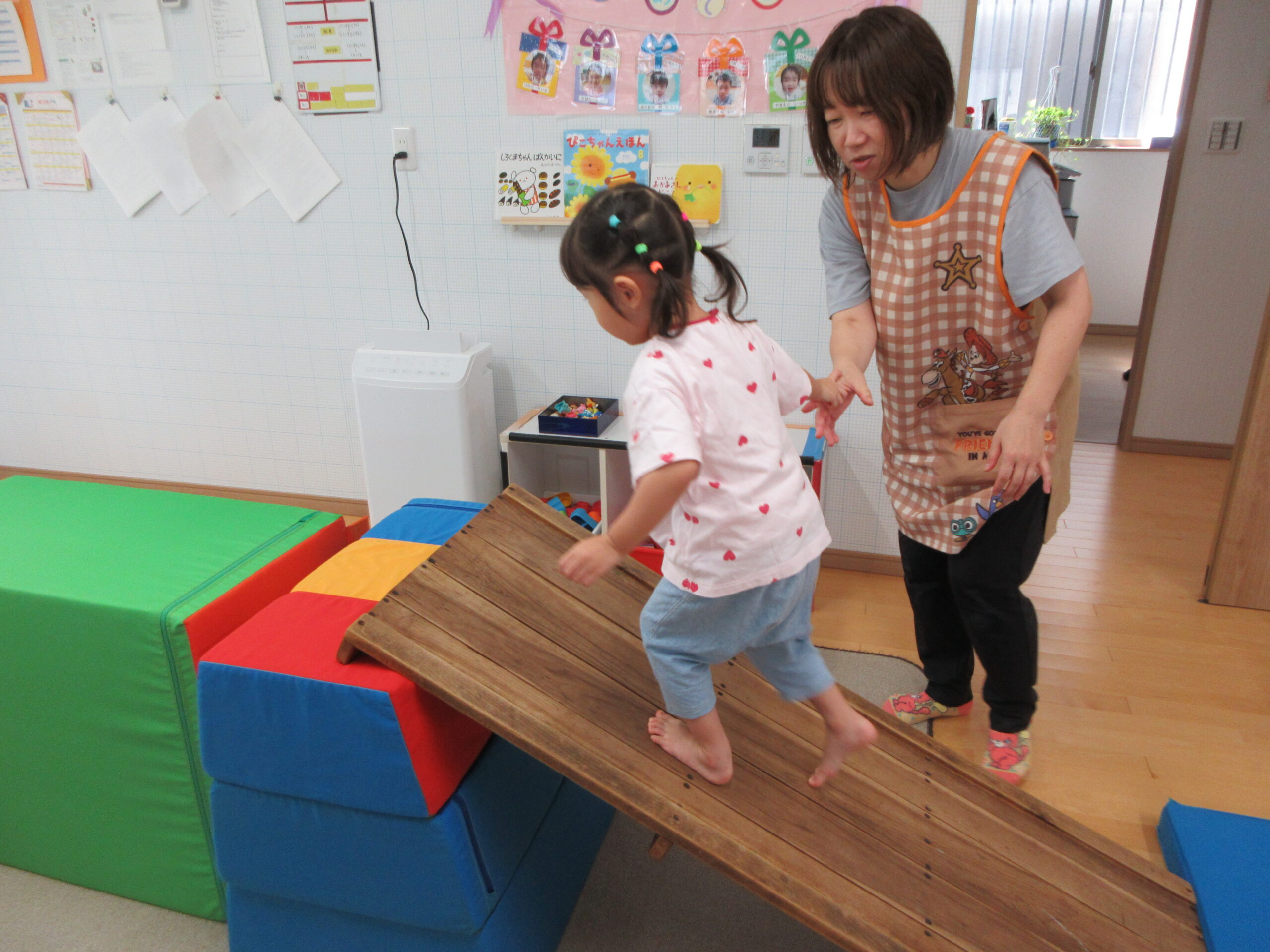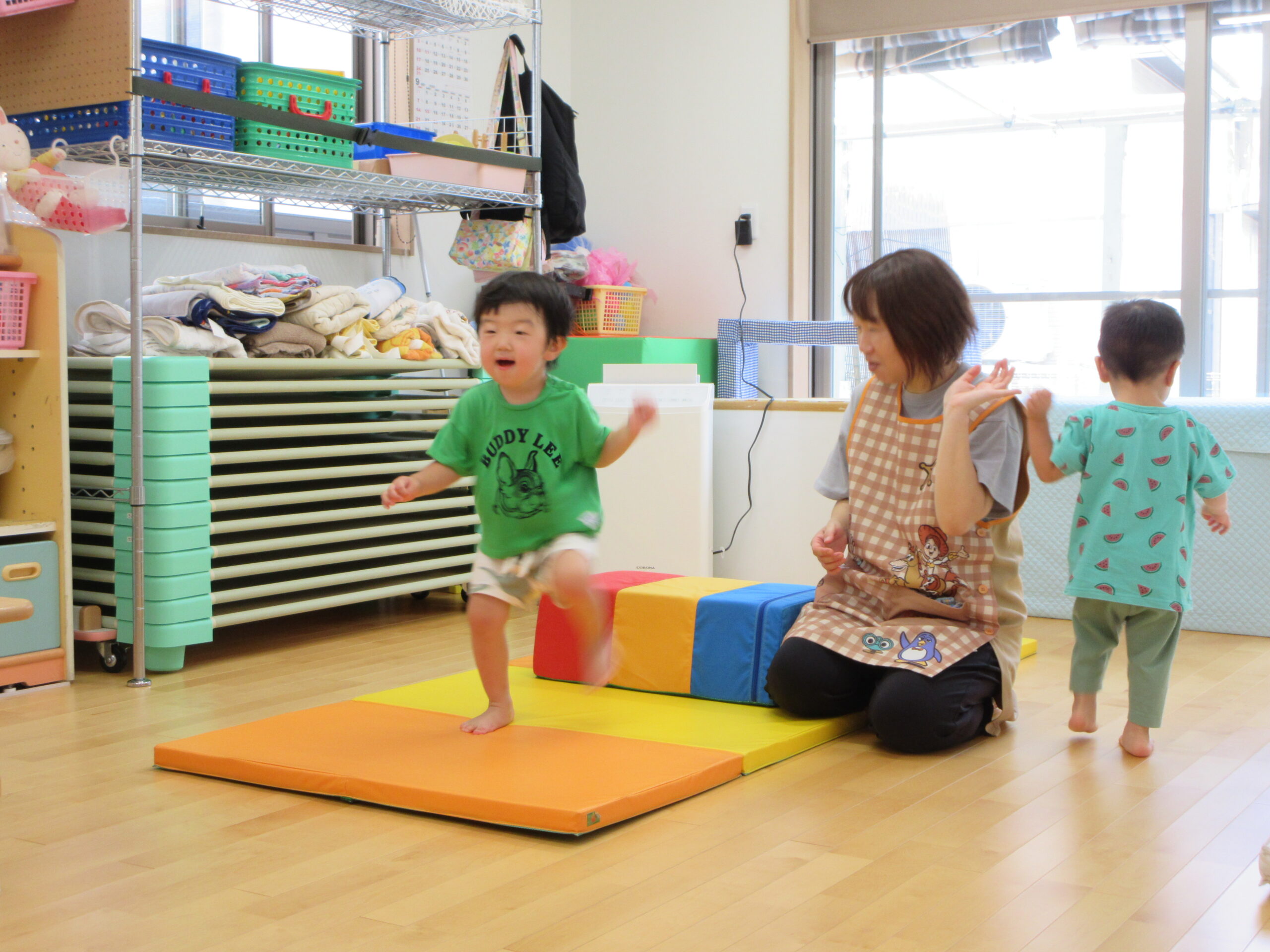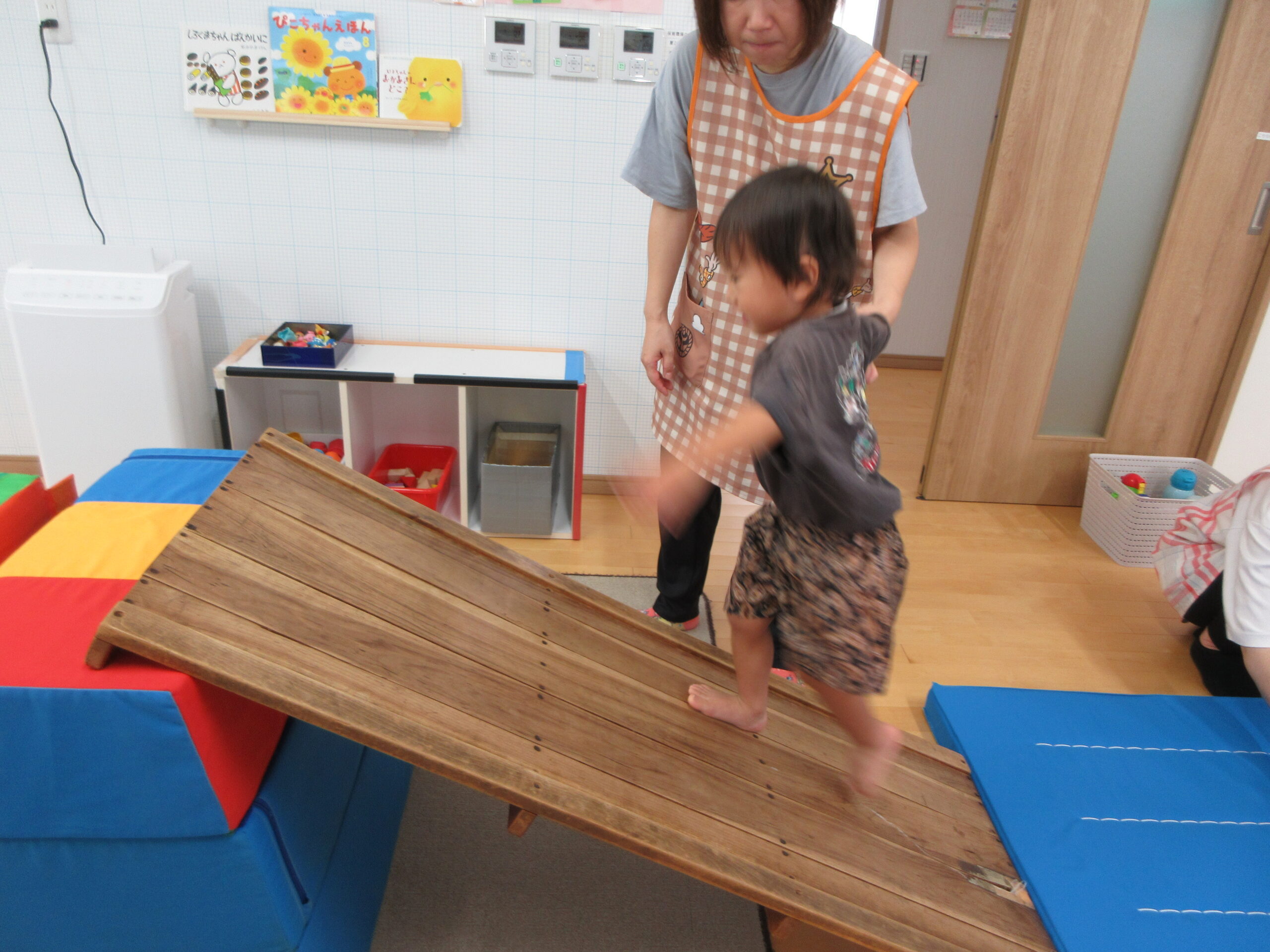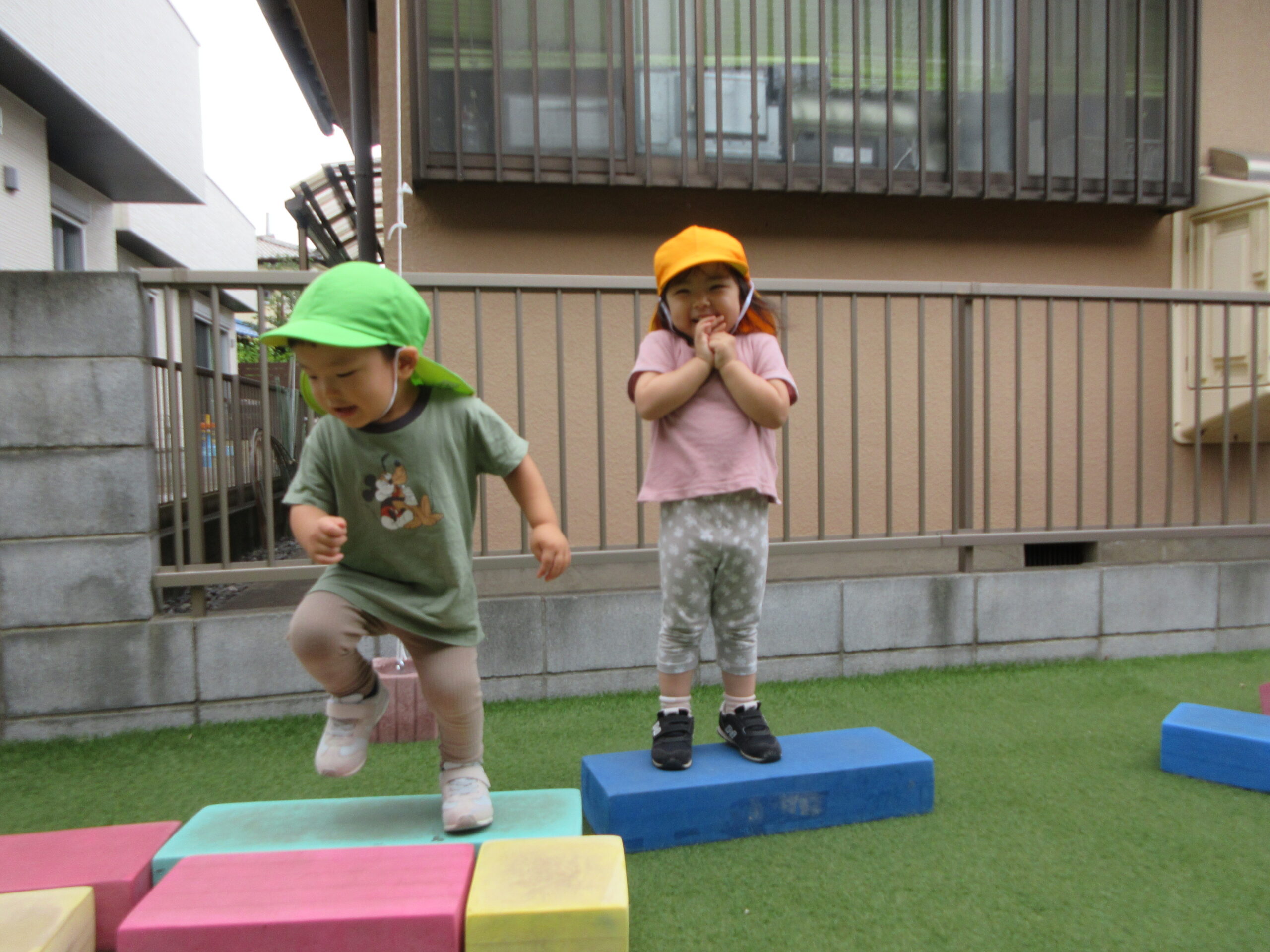 音楽に合わせて身体を動かしたり、はしごを渡ったり