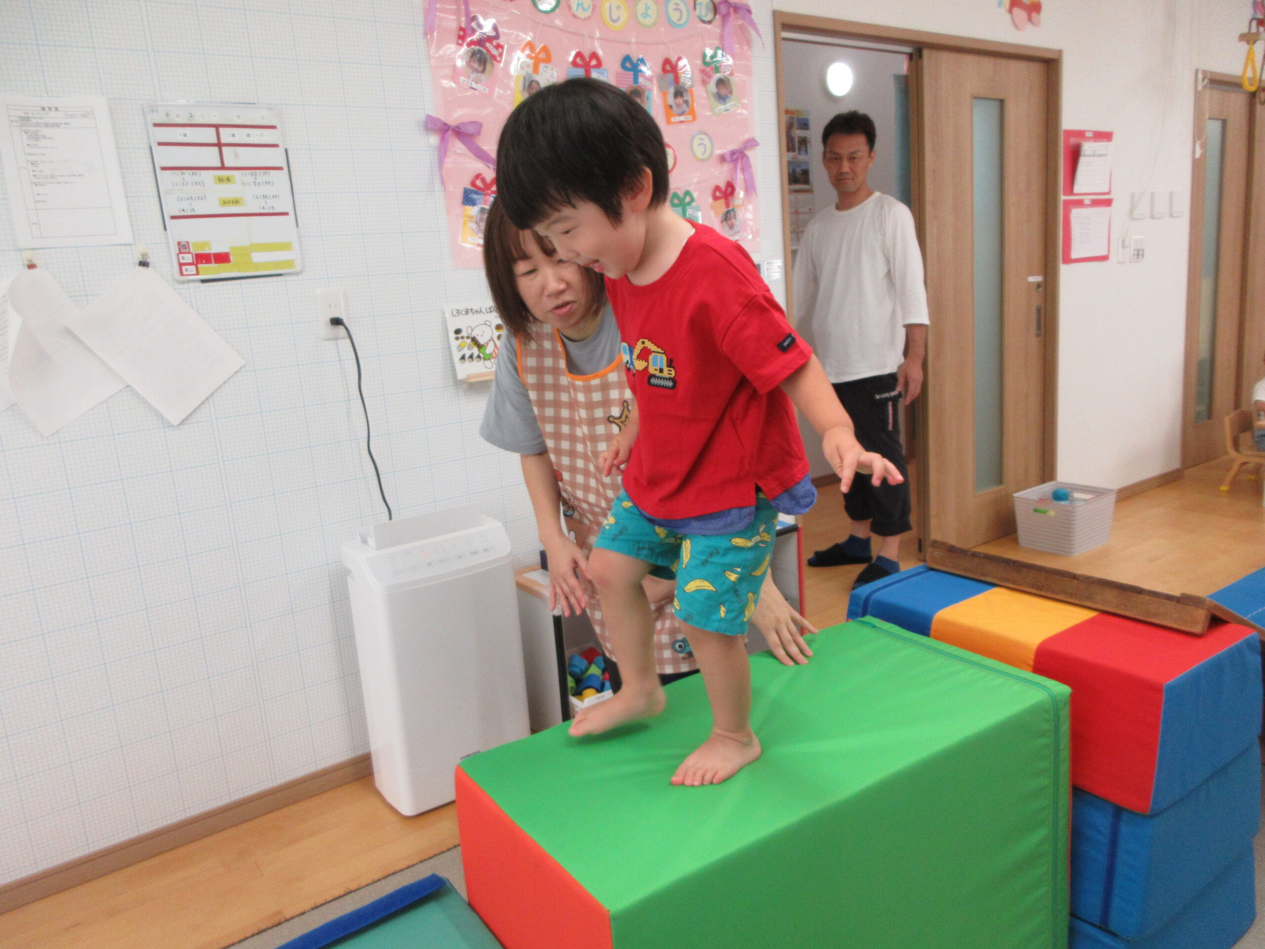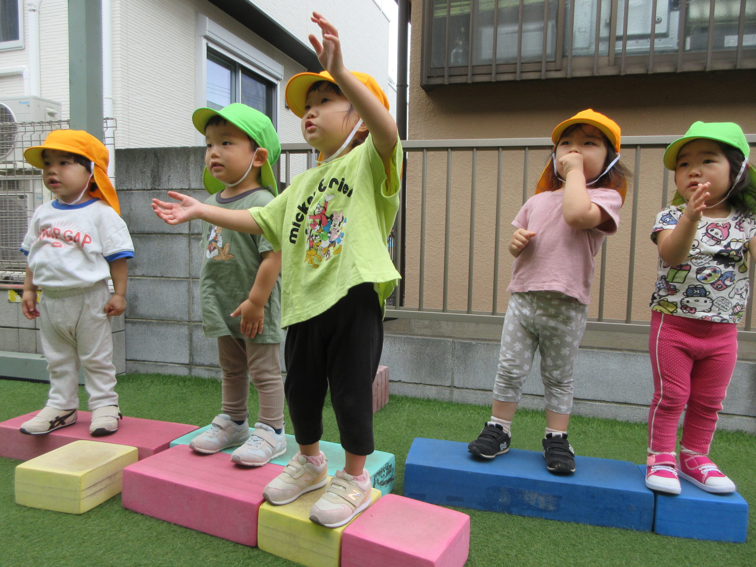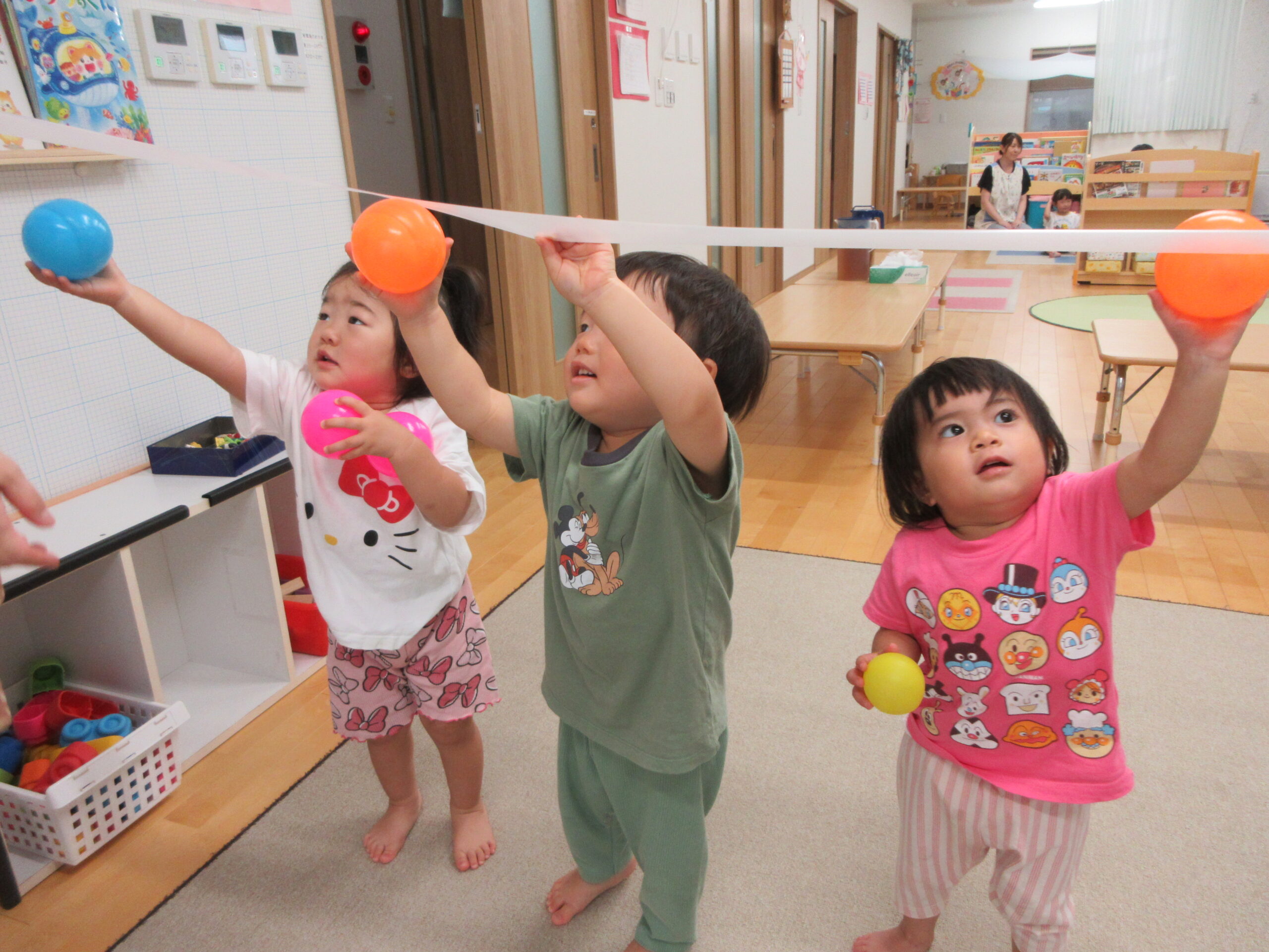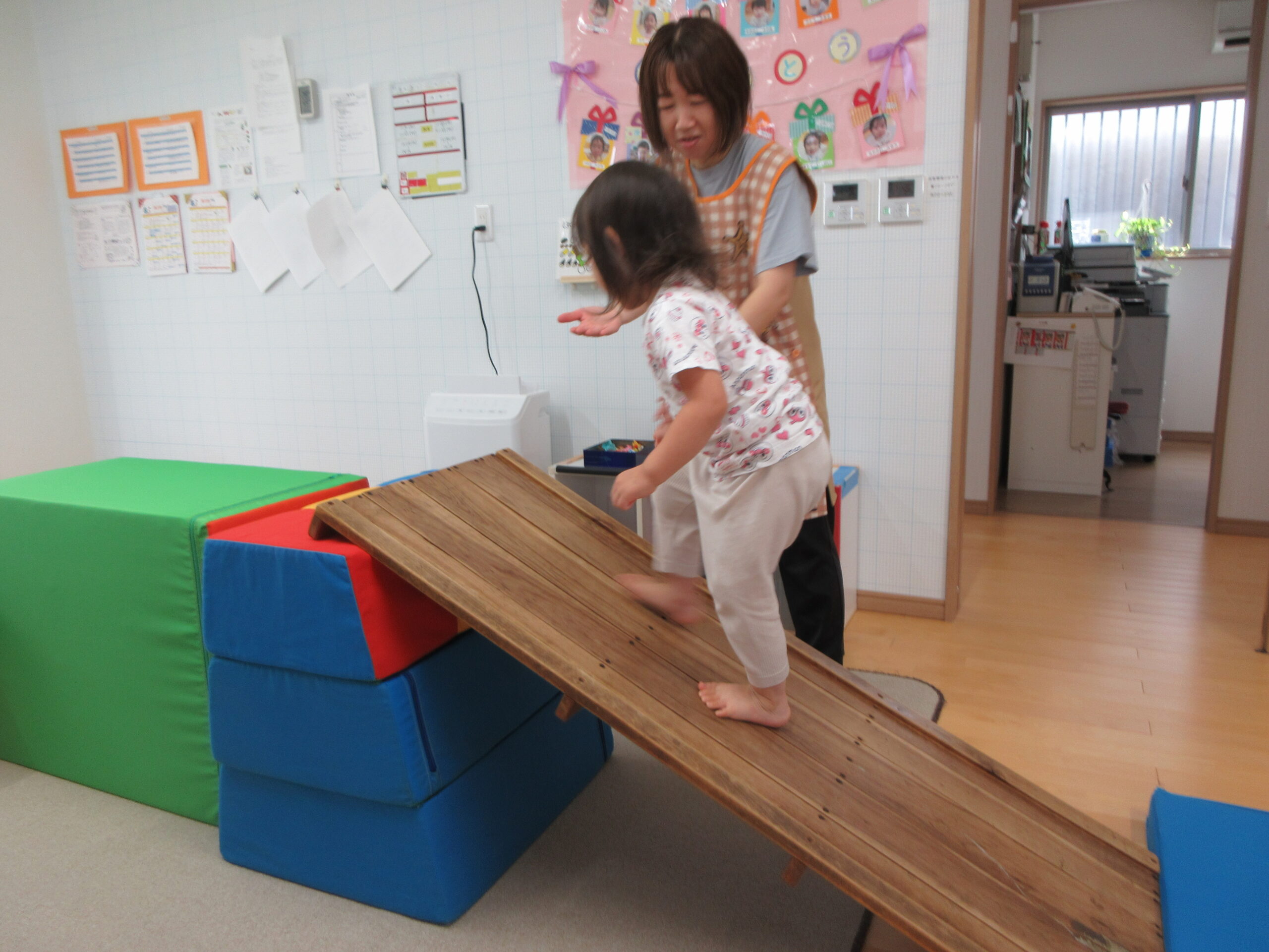 音楽に合わせて身体を動かしたり、はしごを渡ったり