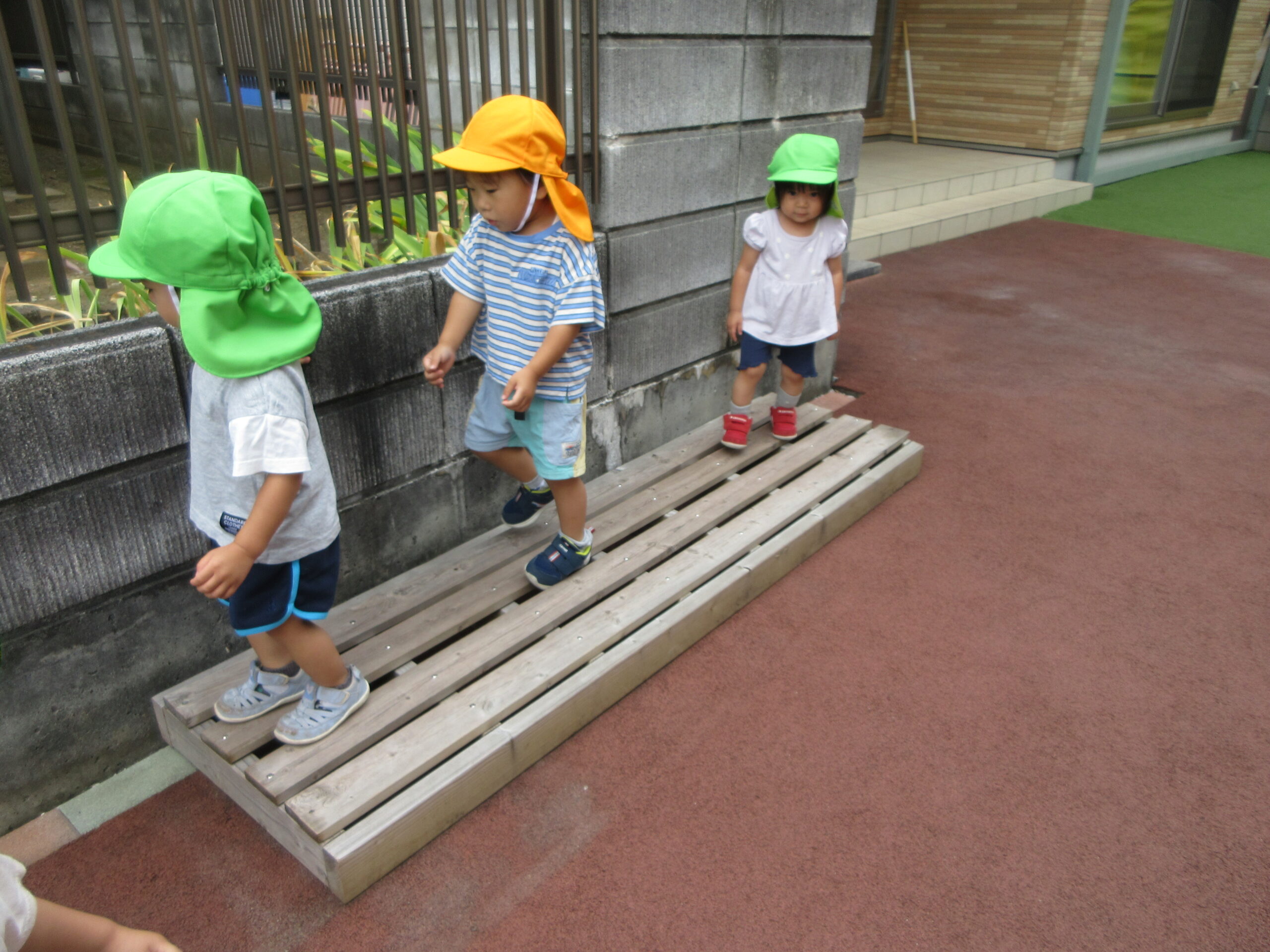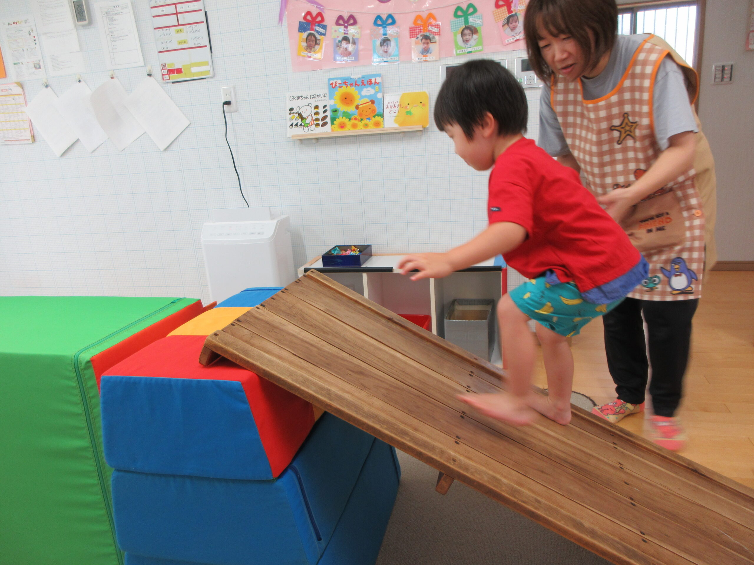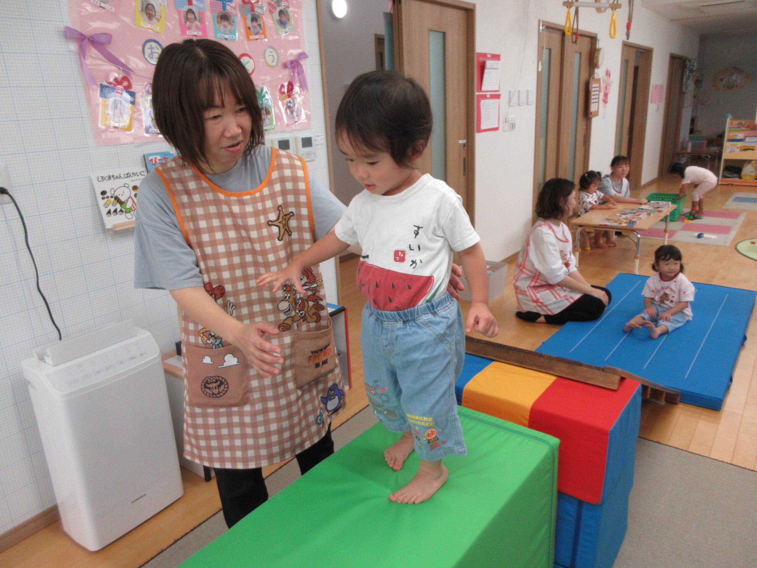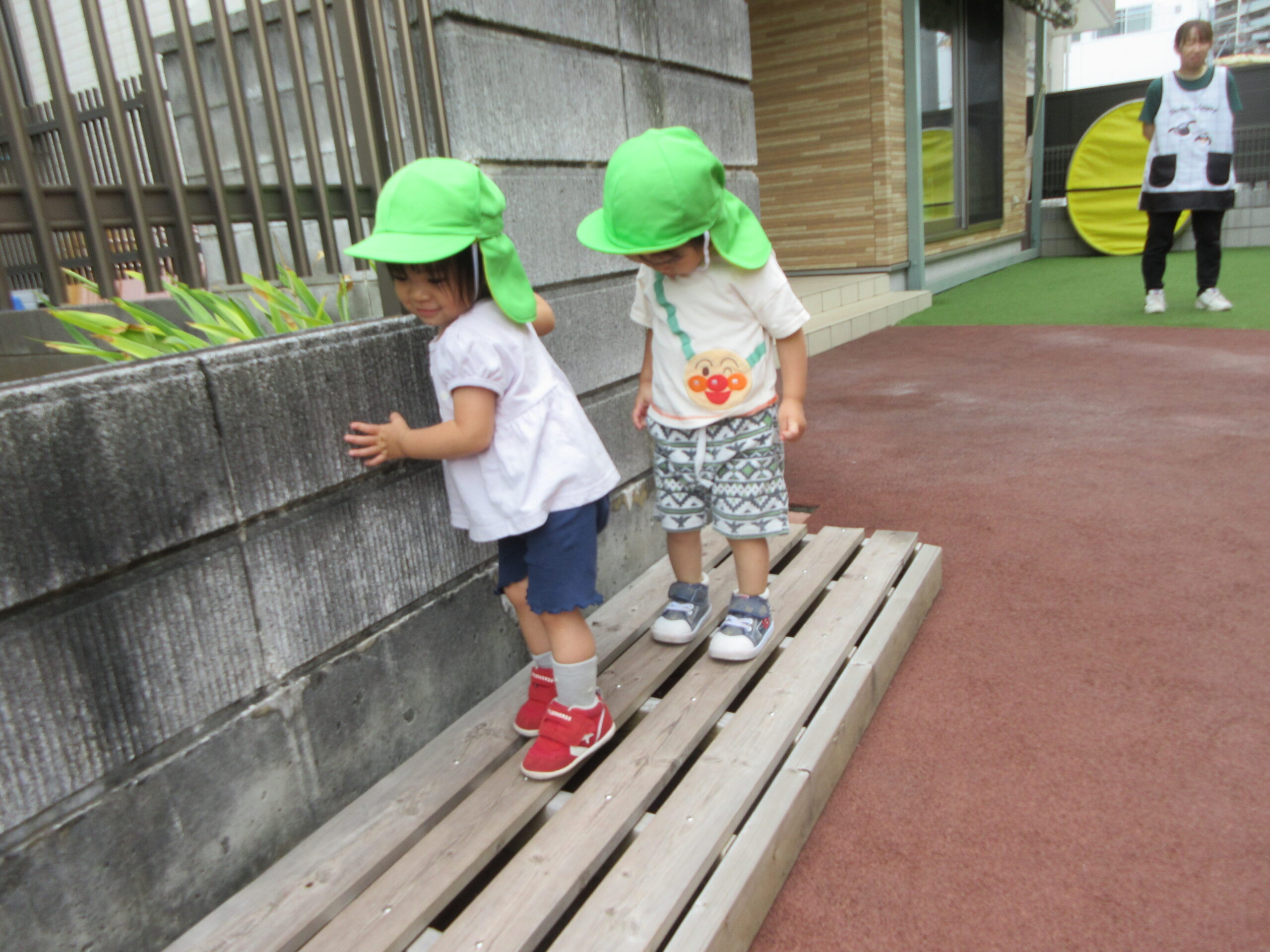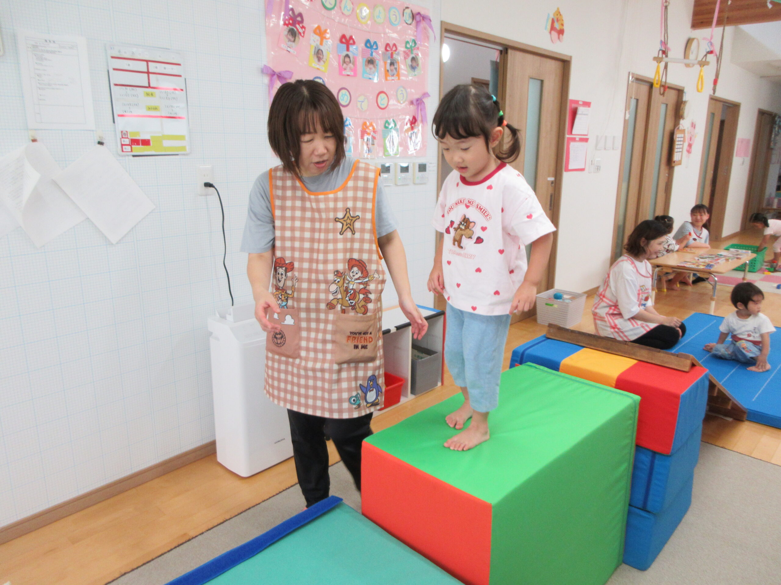 音楽に合わせて身体を動かしたり、はしごを渡ったり