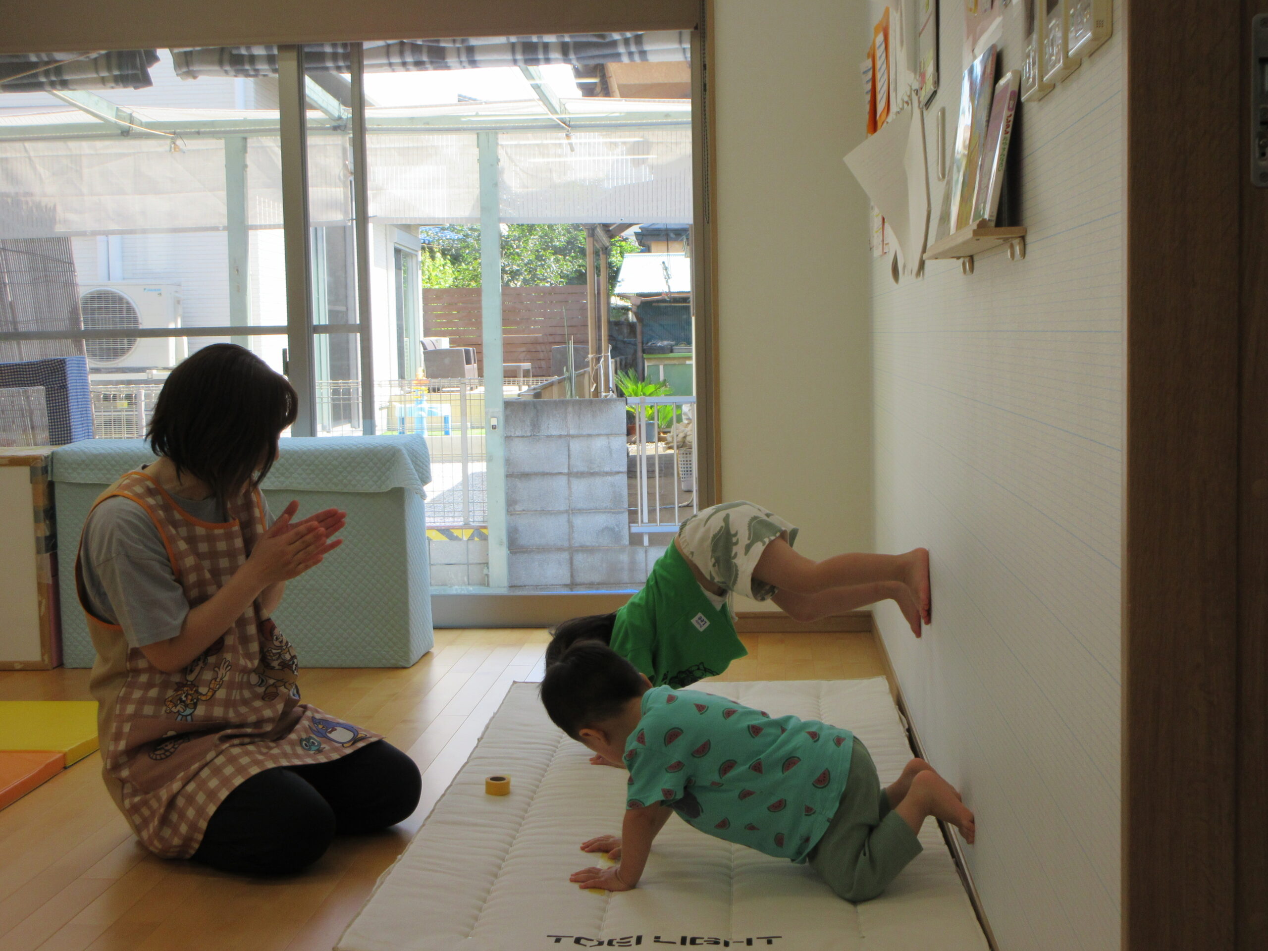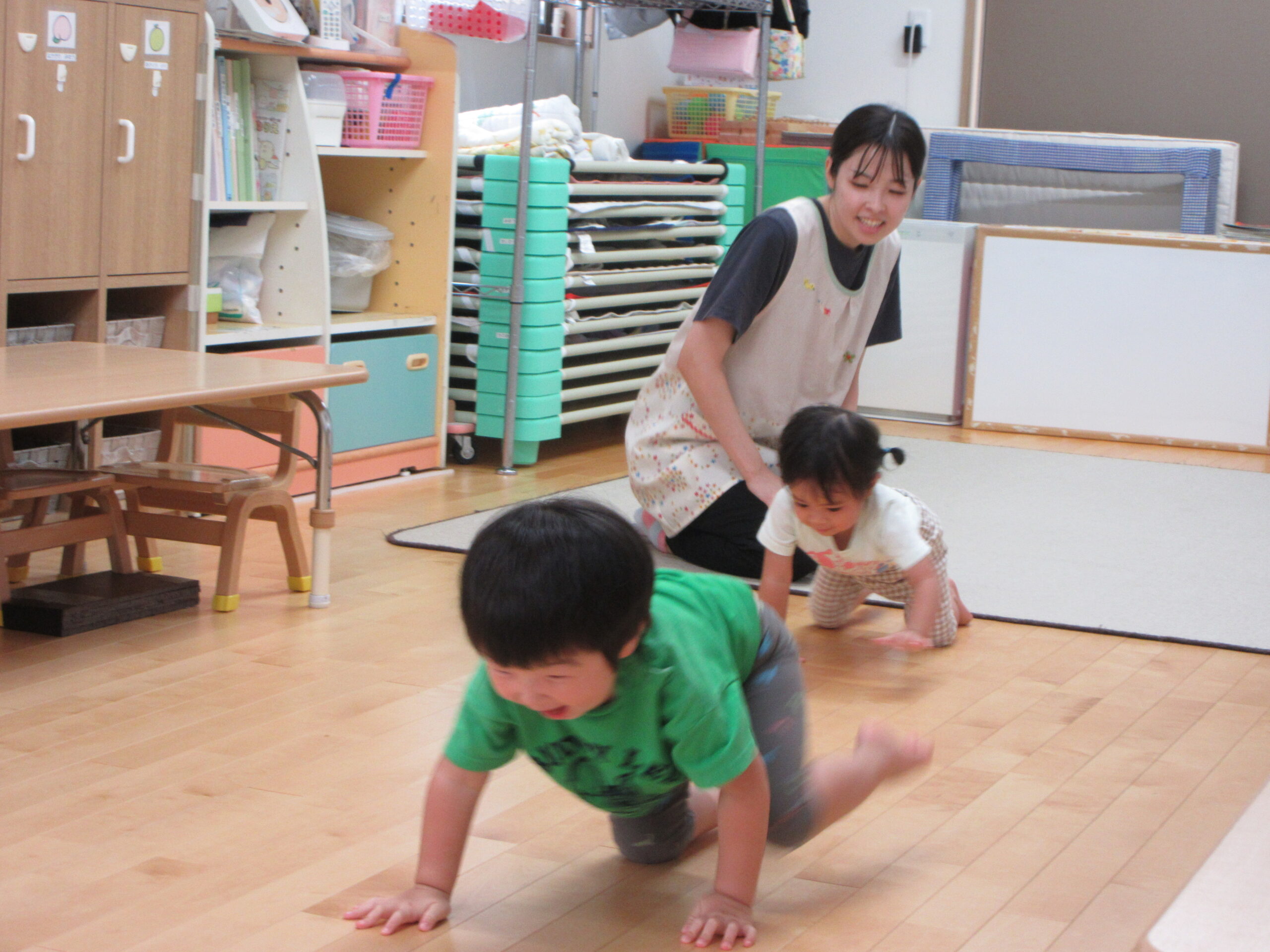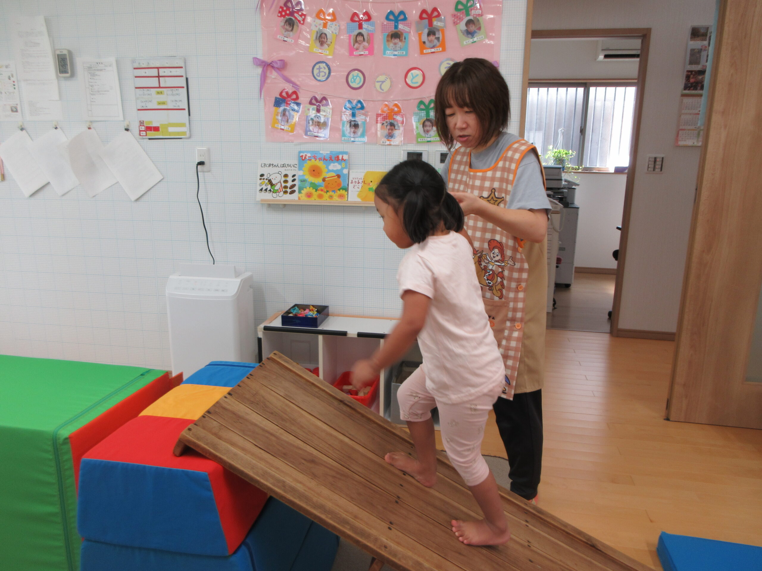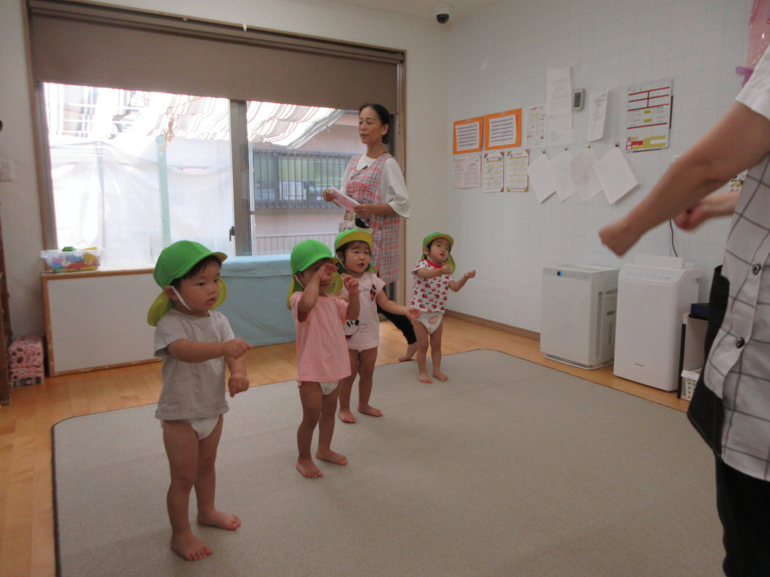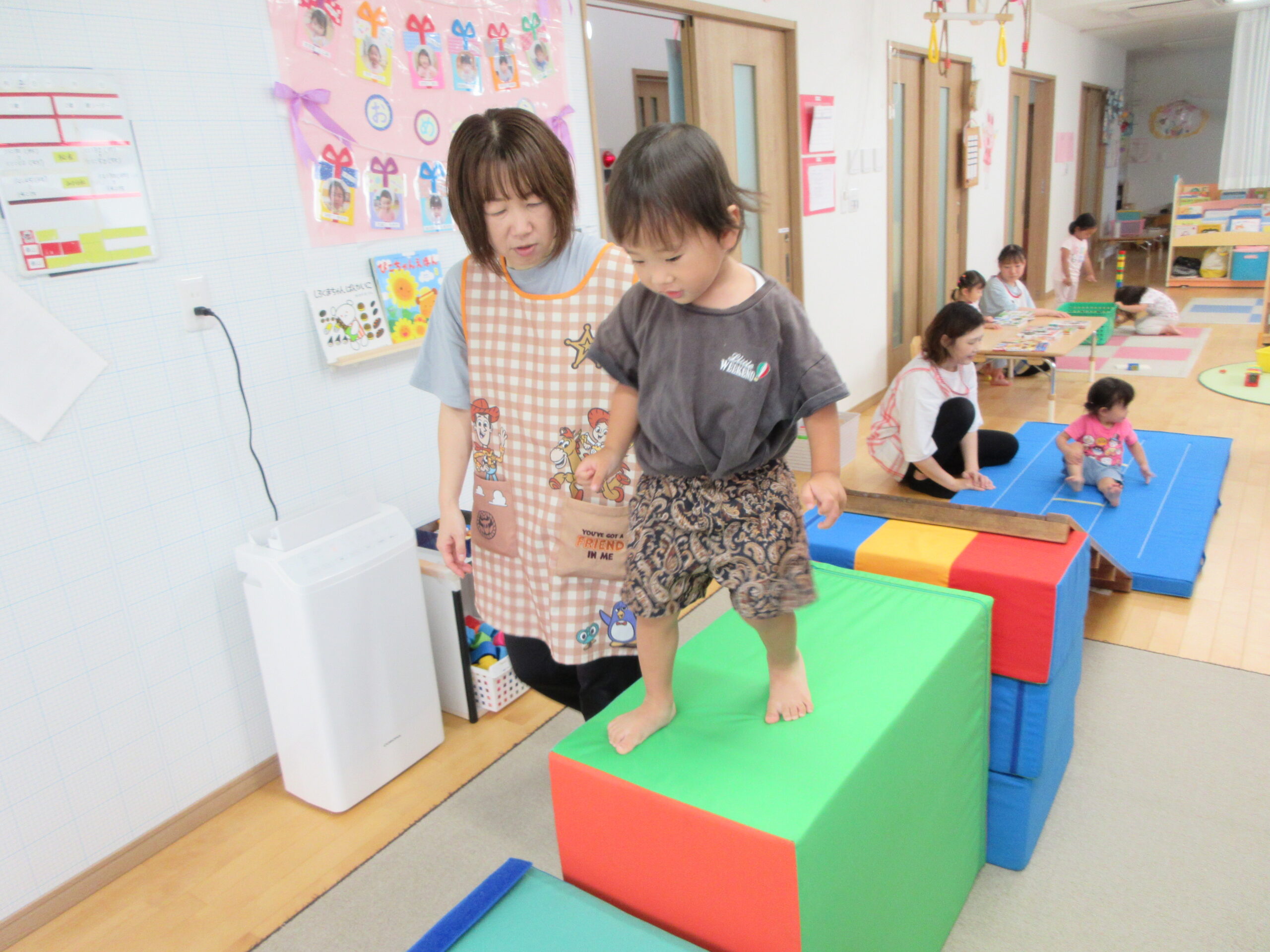 音楽に合わせて身体を動かしたり、はしごを渡ったり