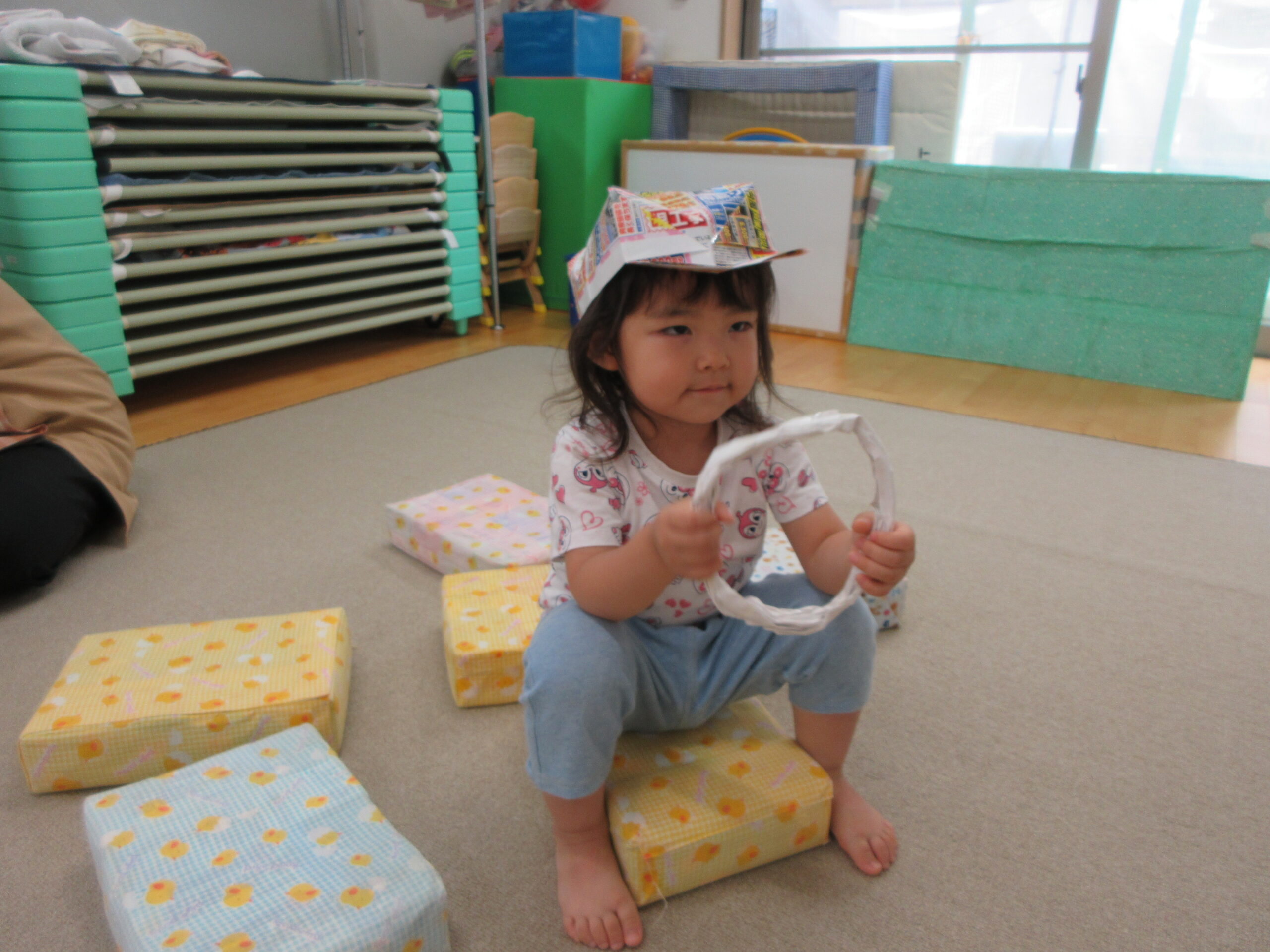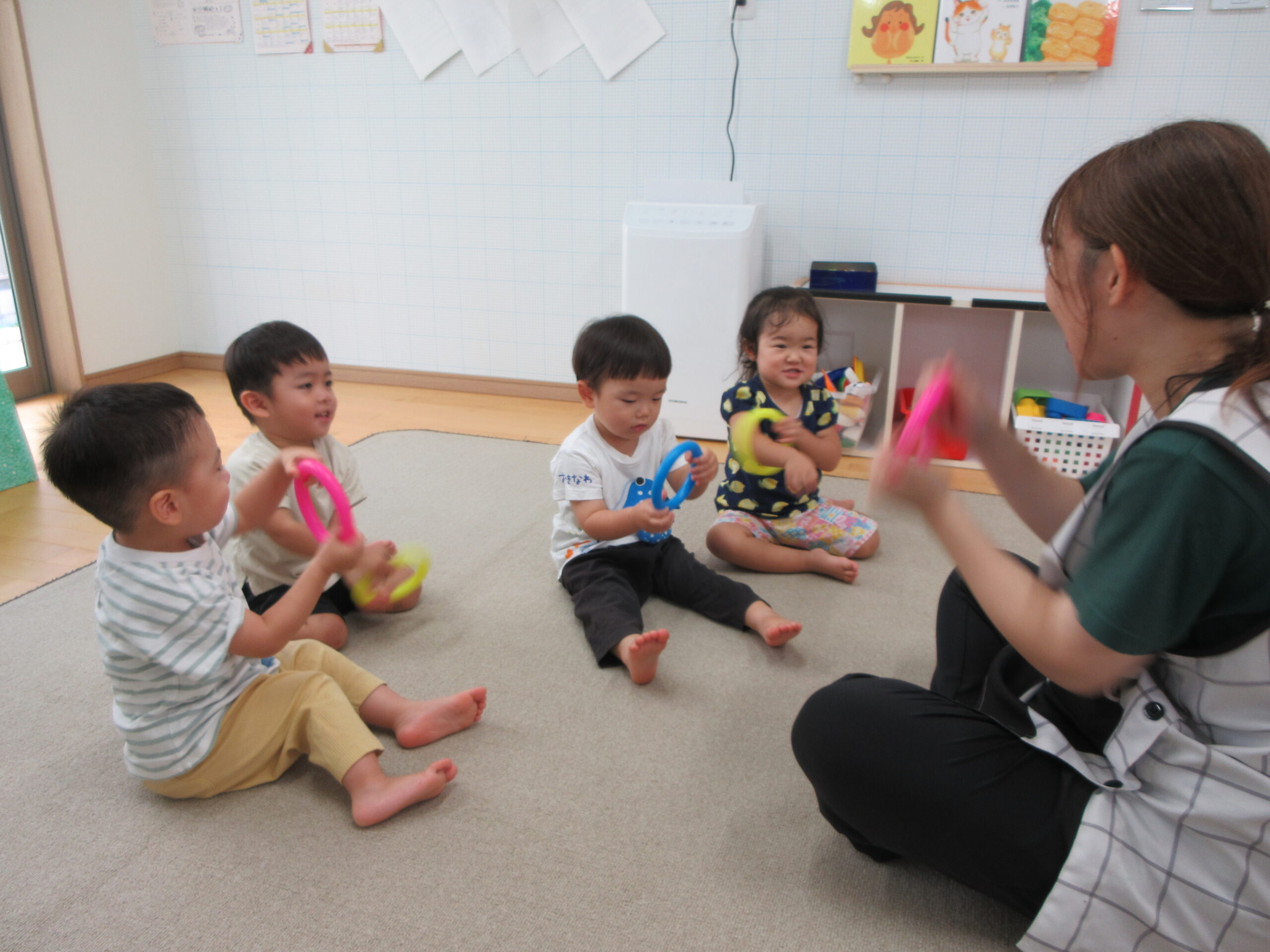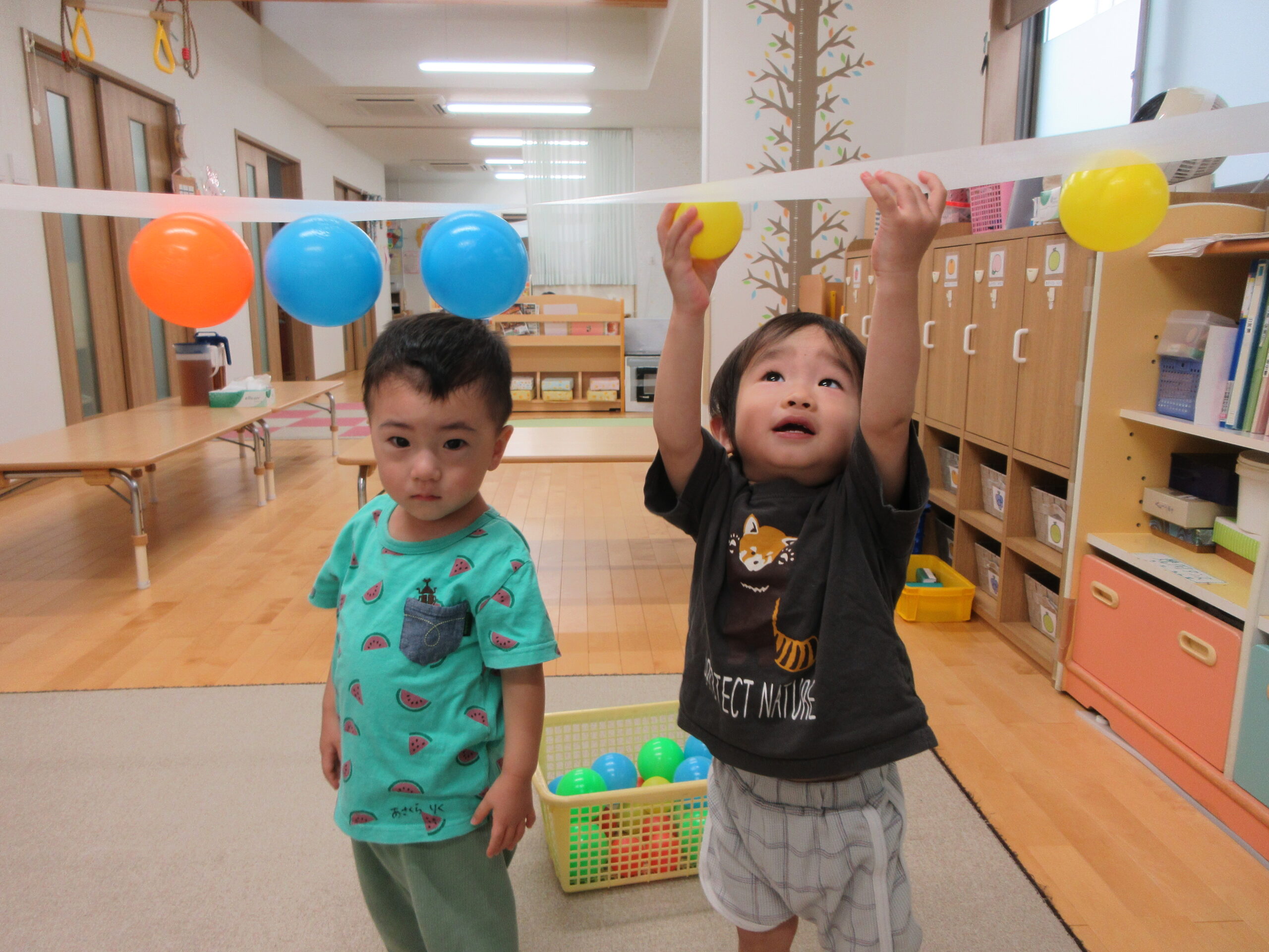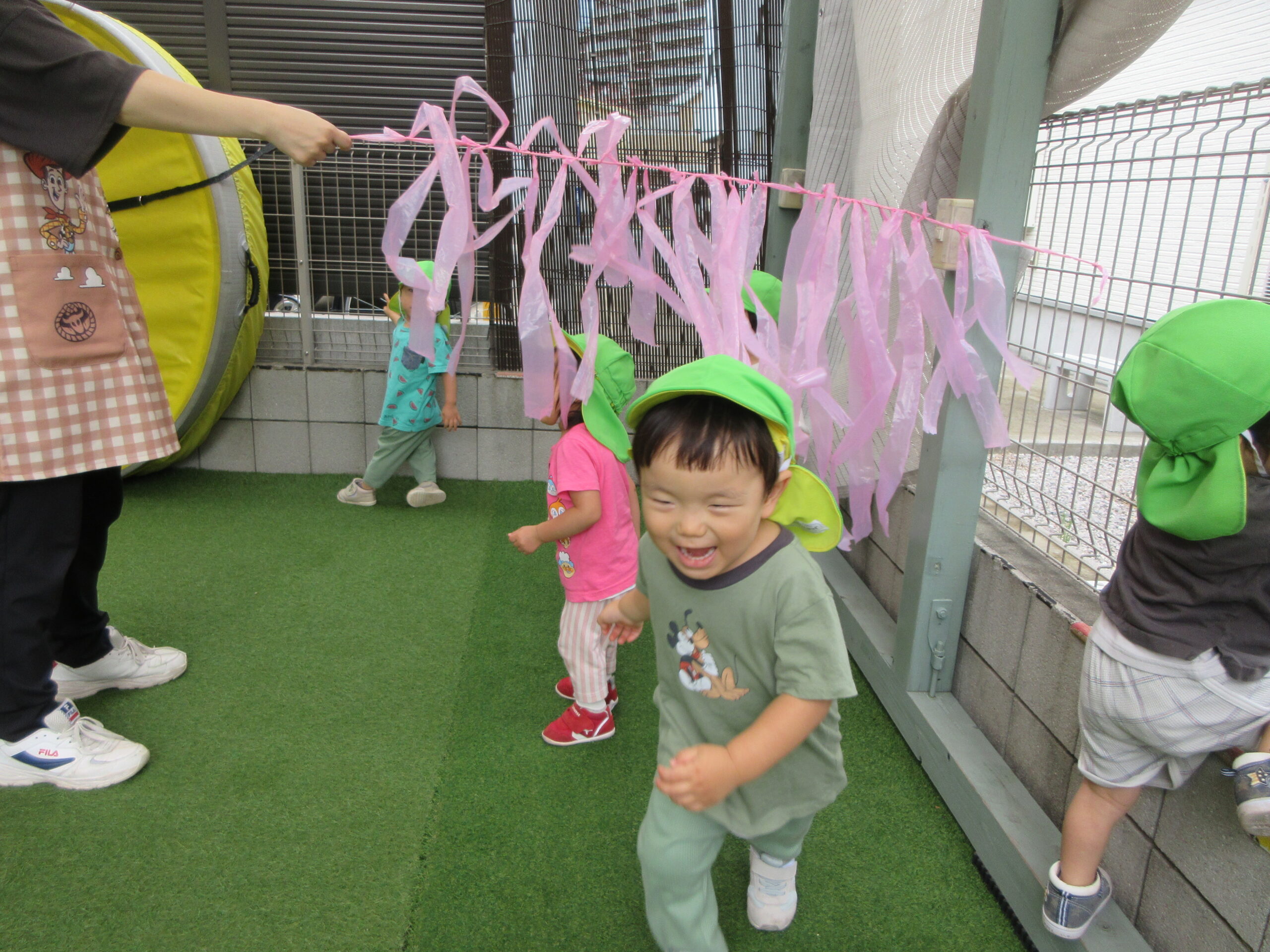 音楽に合わせて身体を動かしたり、はしごを渡ったり