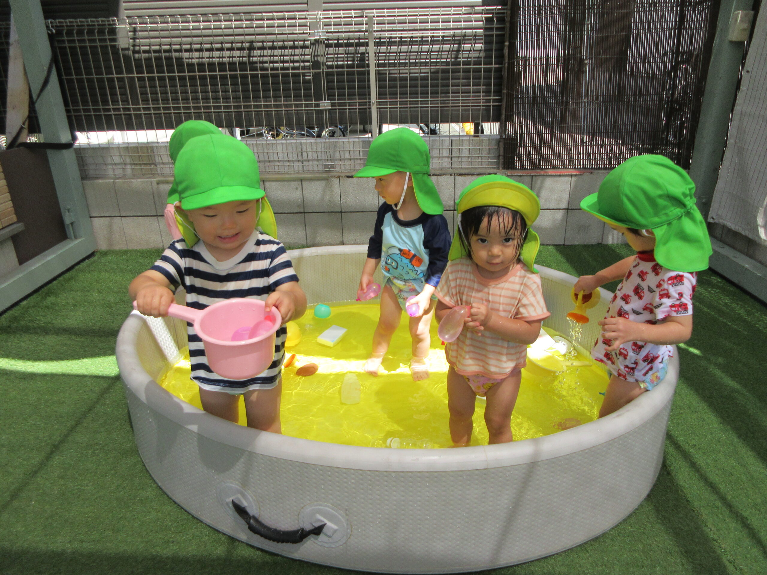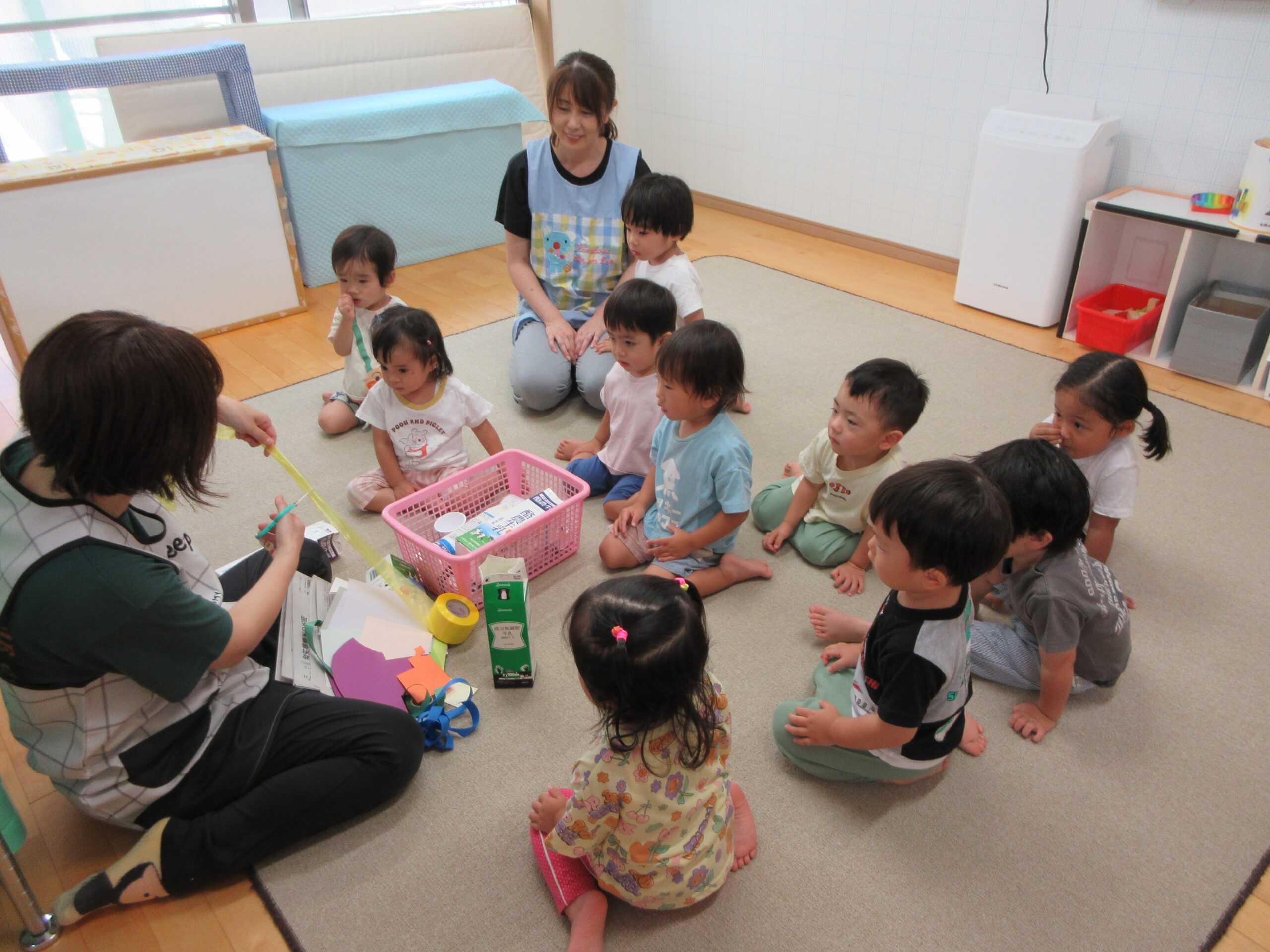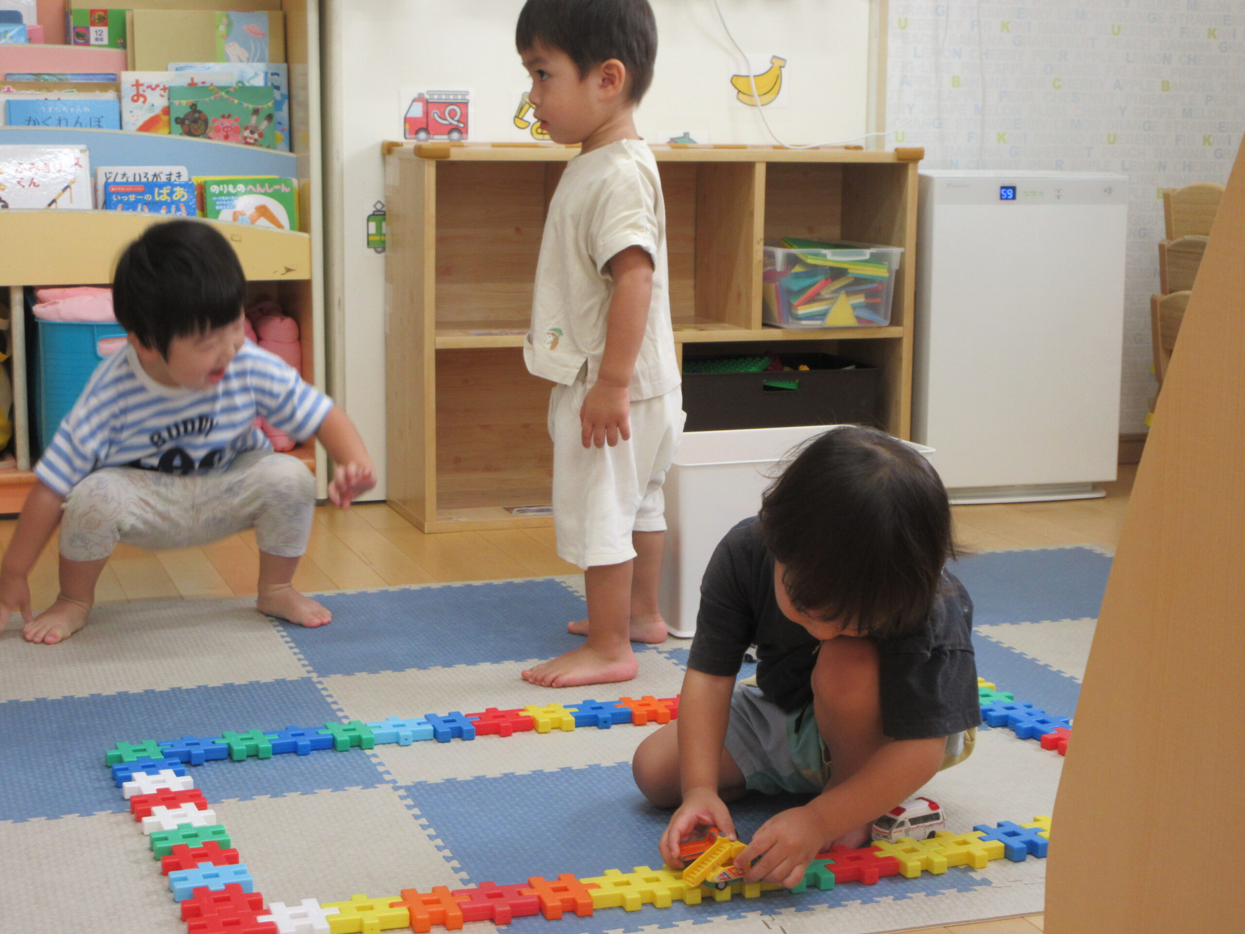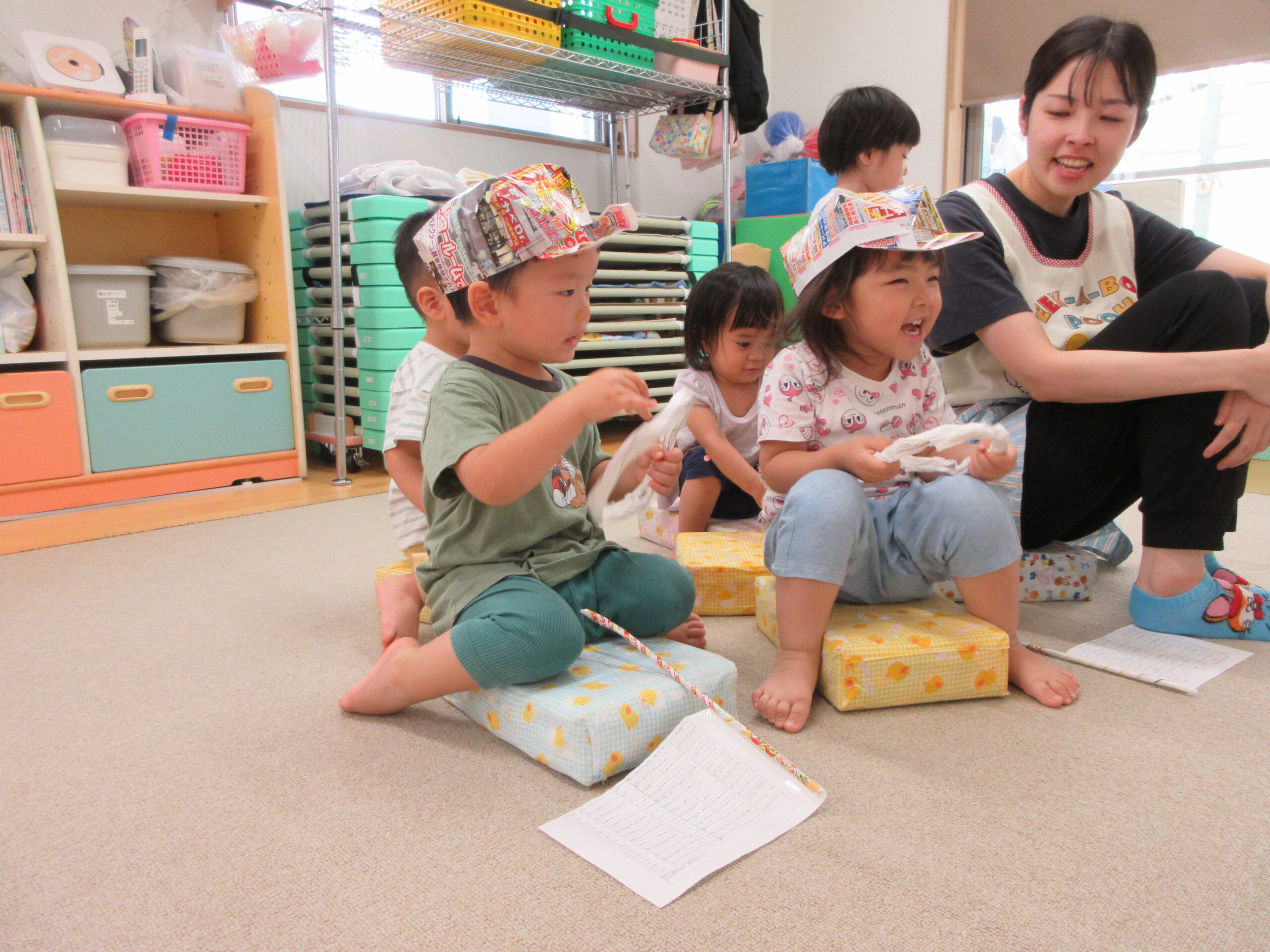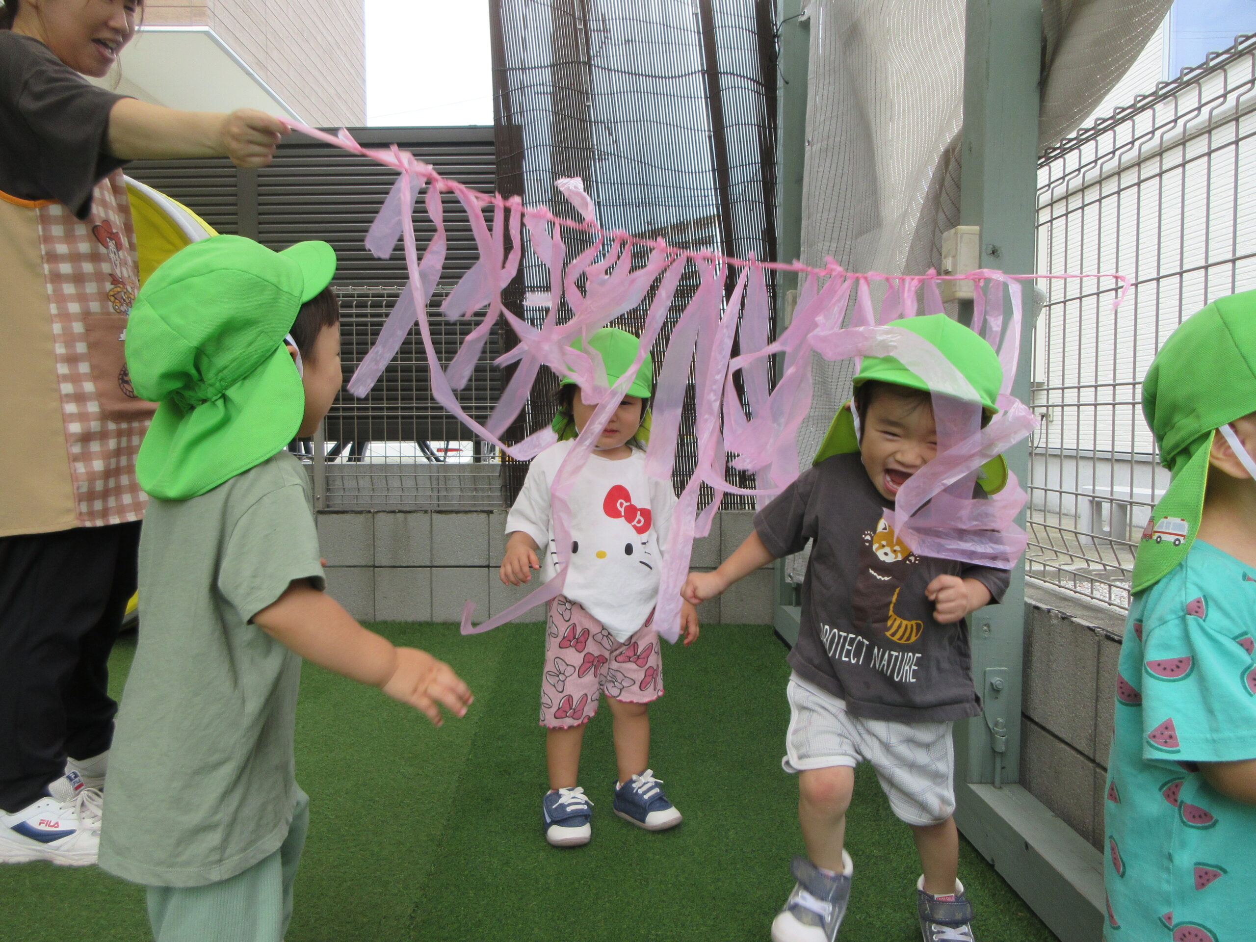 音楽に合わせて身体を動かしたり、はしごを渡ったり