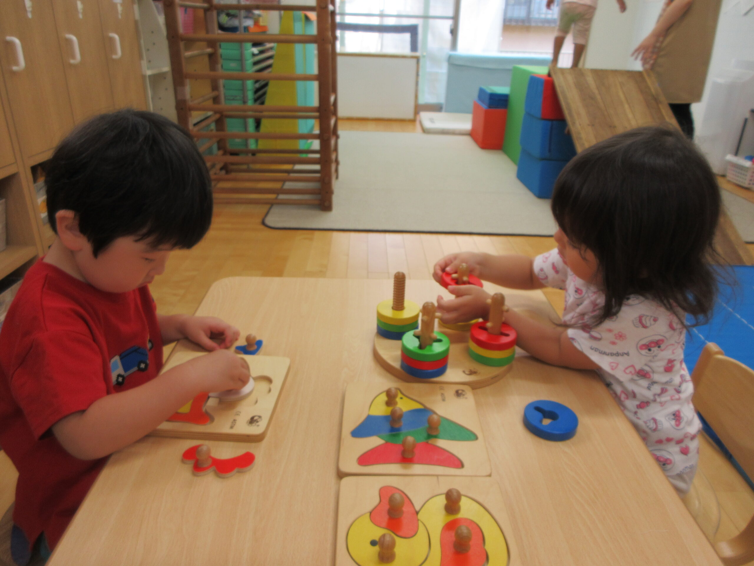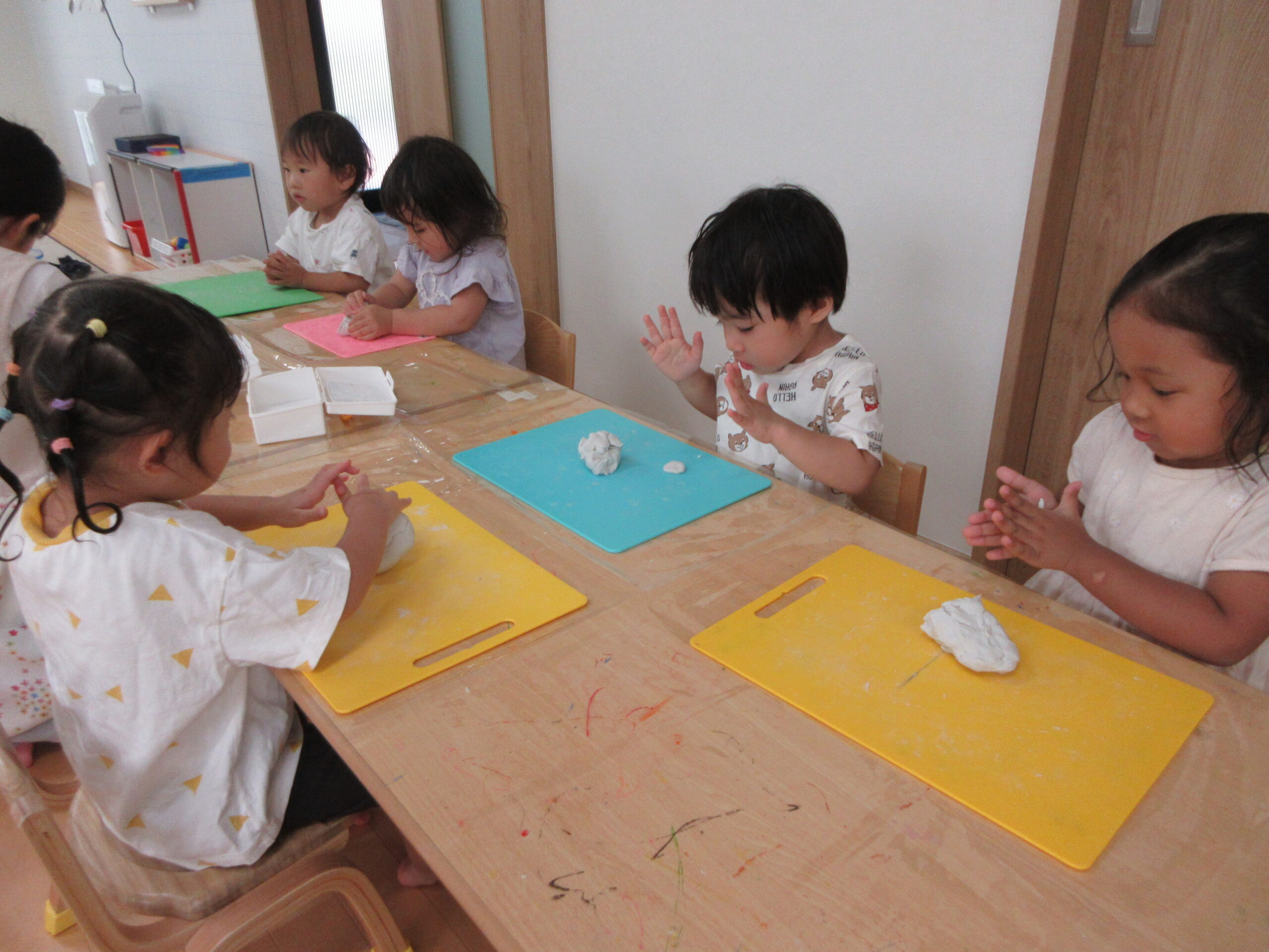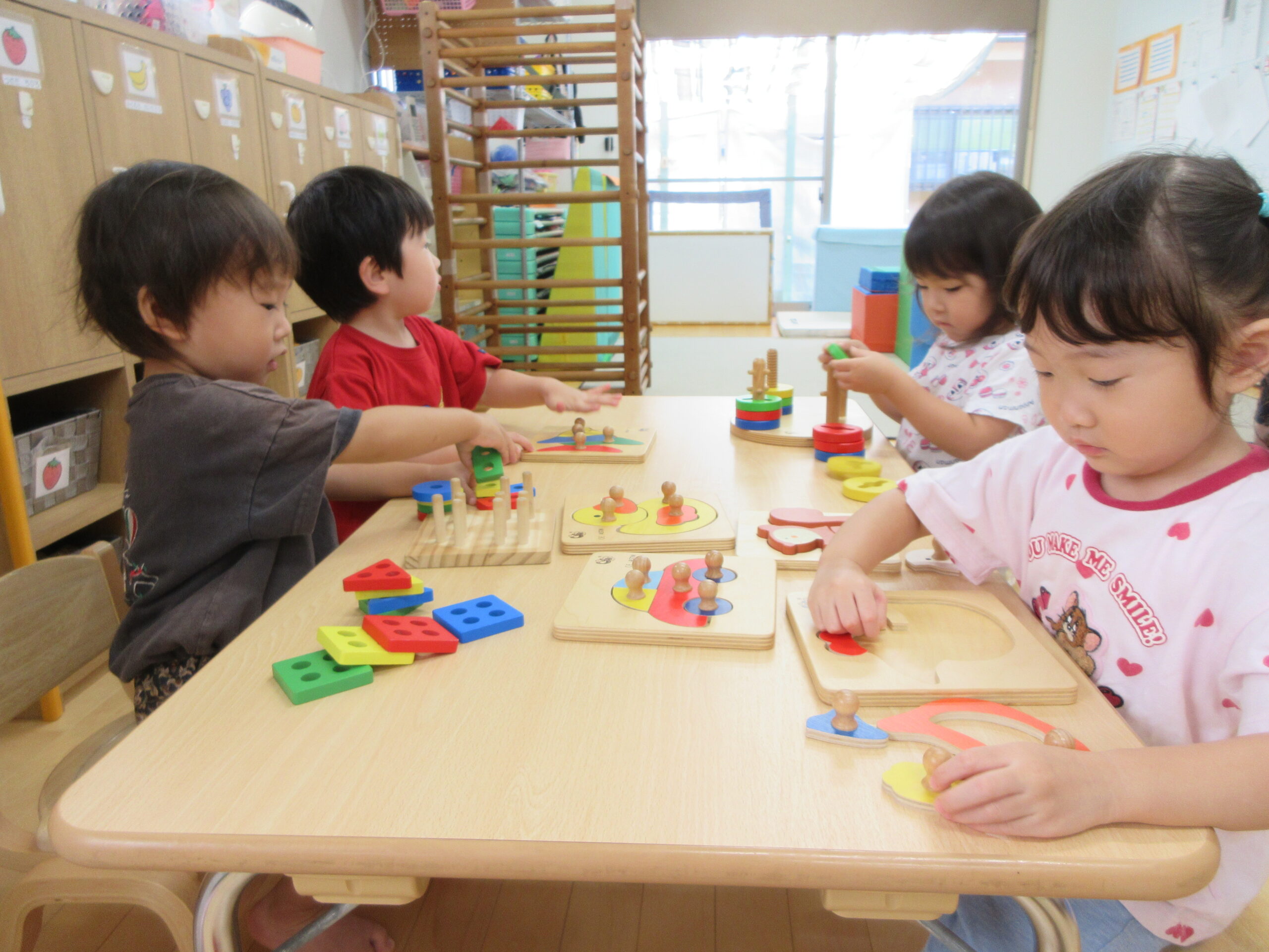 新しい課題に取り組む姿は真剣そのもの、できたときには満面の笑みを浮かべています