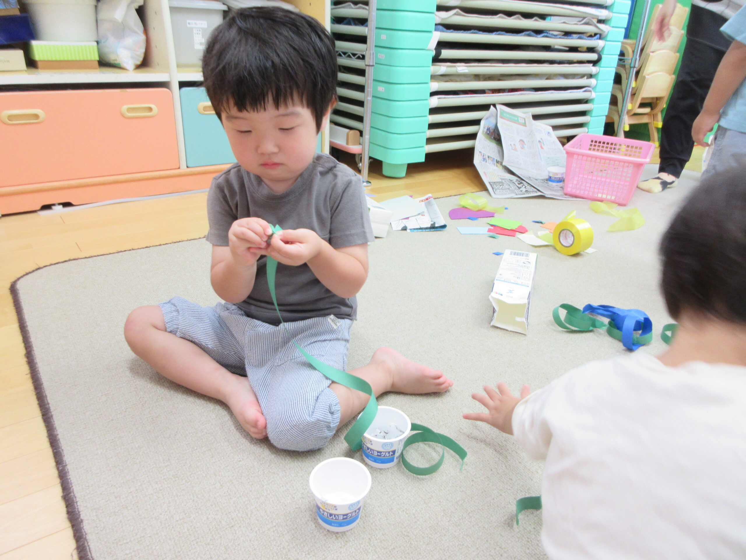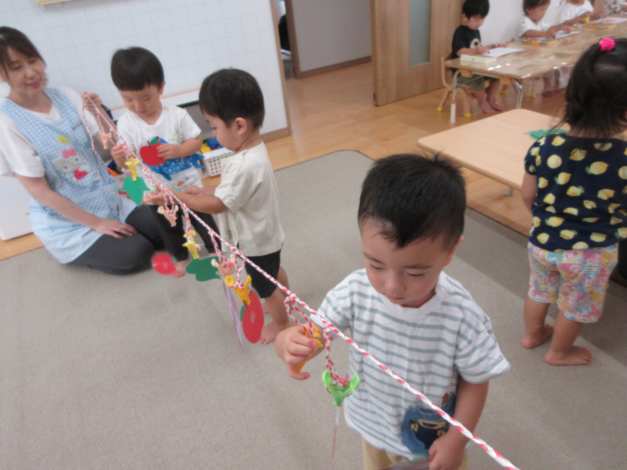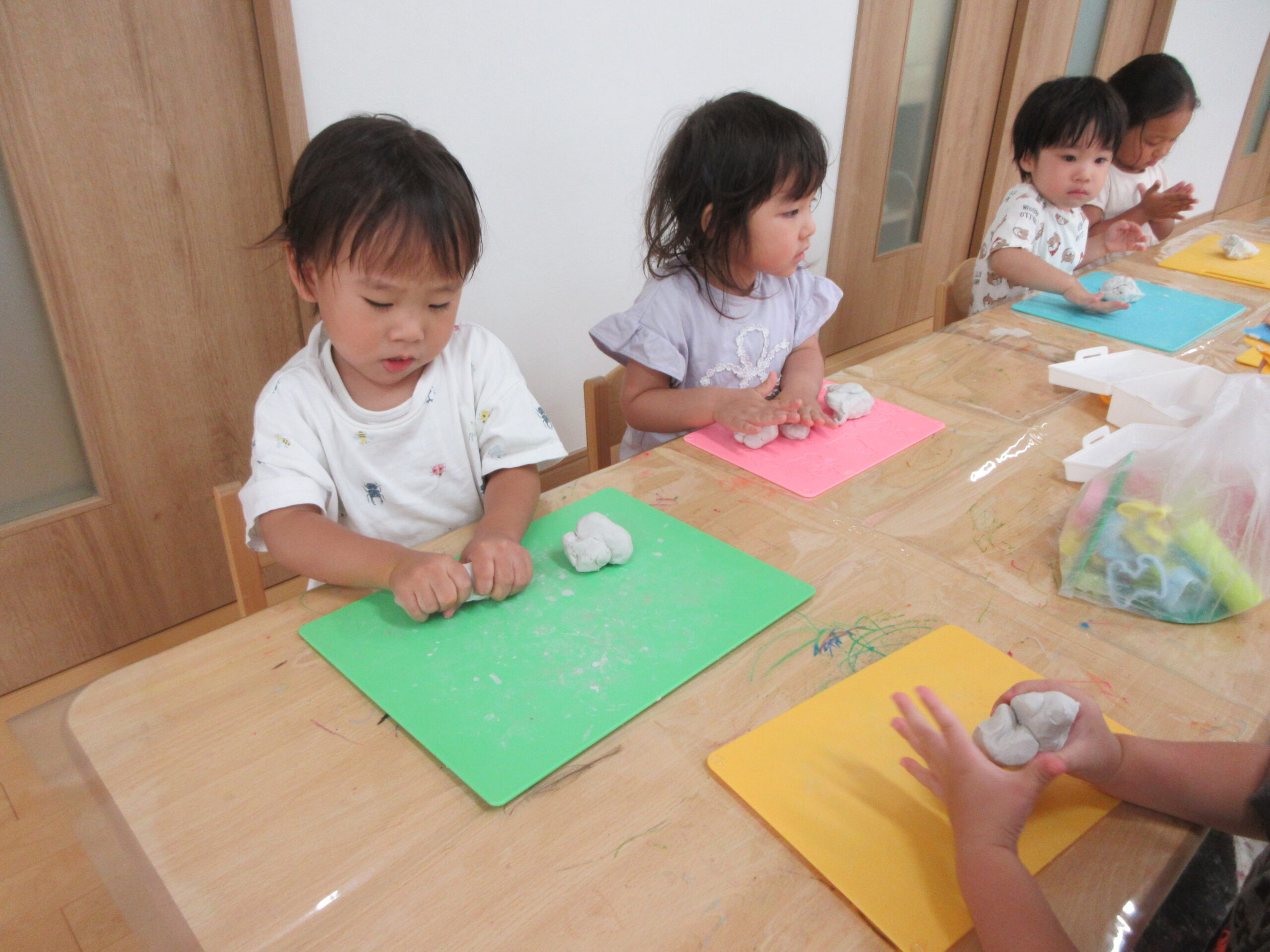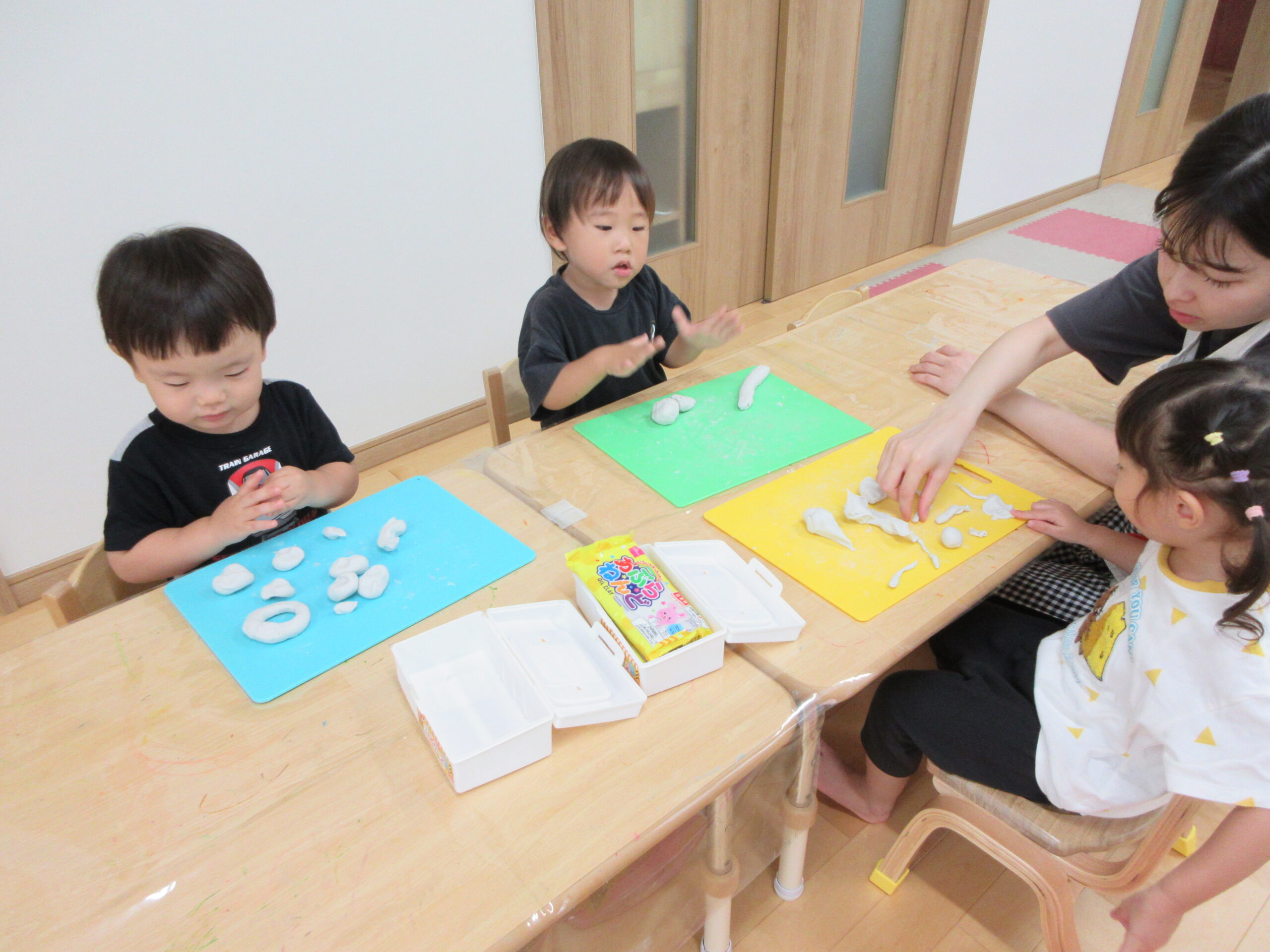 新しい課題に取り組む姿は真剣そのもの、できたときには満面の笑みを浮かべています